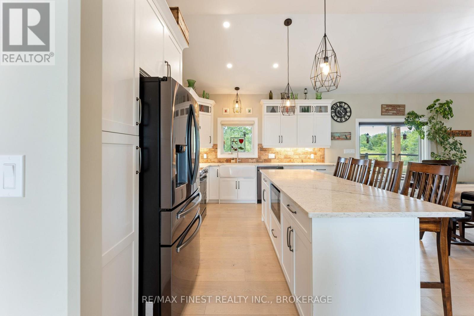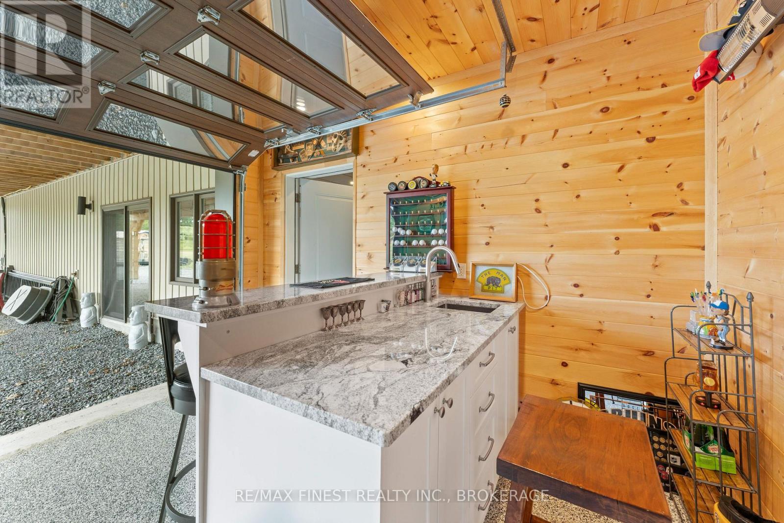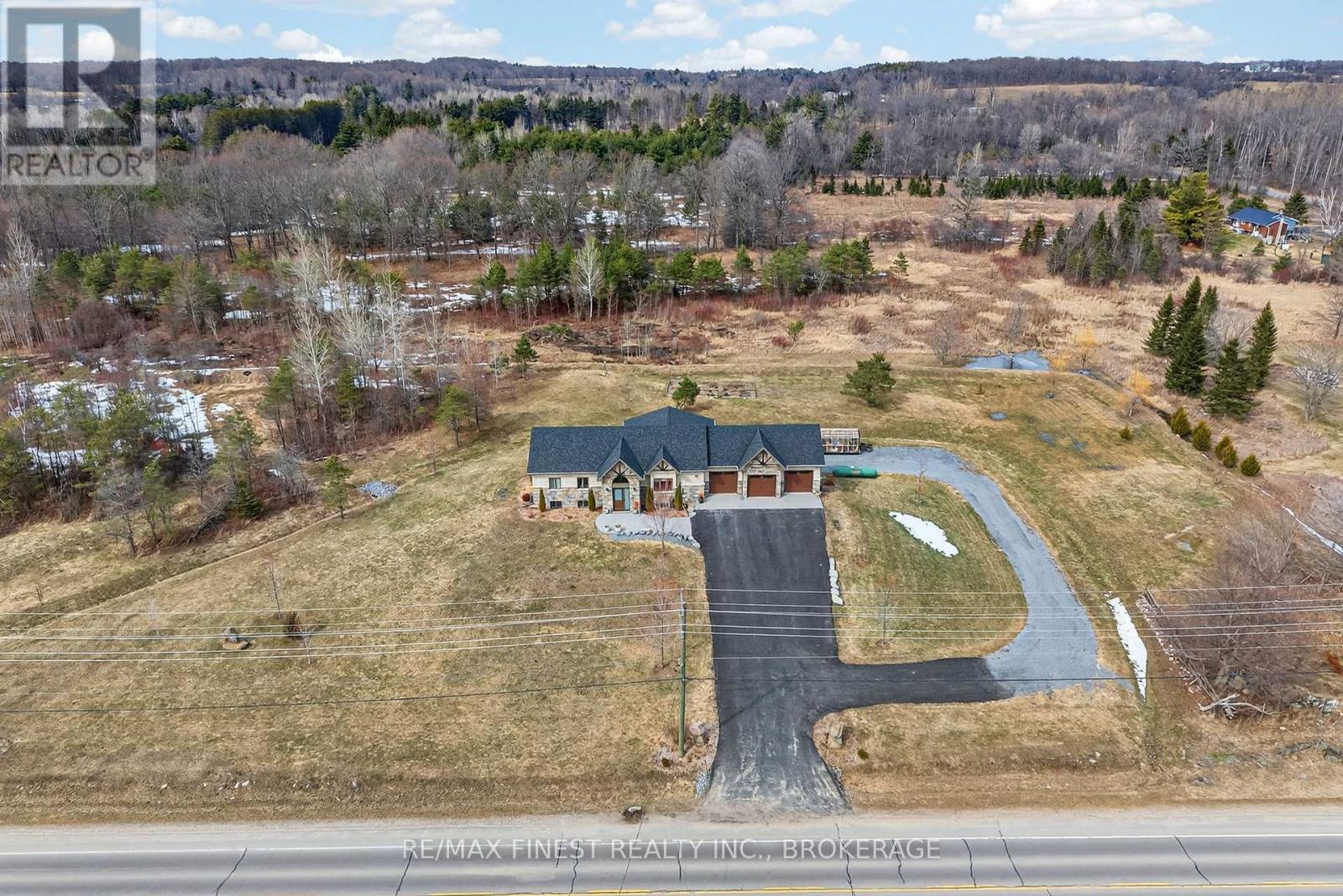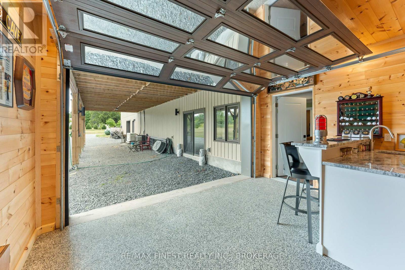 Thoughtfully designed, beautifully maintained, and upgraded throughout, this 5-year-oldbungalow offers a lifestyle as remarkable as its features. From the moment you arrive, the property's presence captivates with 3 acres of professionally landscaped grounds with trees, vibrant gardens, natural stone accents, and a 3-wide paved driveway that gracefully wraps around to the rear garage and patio. Inside, light-filled spaces blend comfort with sophistication. The open-concept main level is anchored by a stunning stone fireplace with a propane insert, creating a warm focal point in the living area. The kitchen showcases stone countertops, stainless steel appliances, and picturesque views of the private backyard. The primary suite is a retreat of its own, featuring a 4-piece ensuite with built-in vanity, walk-in closet, additional closet, and patio doors leading to a stamped-concrete balcony and an expansive 15x64' deck. A 30' section of this outdoor haven is fully covered, featuring a ceiling fan, pot lights, electrical outlets, and BBQ hookup - the perfect setting for morning coffee or evening gatherings. Two additional bedrooms and a 4-piece bath complete the main level. The lower level expands the possibilities with a large rec room, spacious bedroom, a separate den/home office, a 3piece bathroom, generous storage, a walk-out to the yard, and direct access to the lower garage. This two-level heated garage with six bays finished in epoxy provides endless options for a home workshop, car collection, or recreational toys. A dedicated backyard bar room, with a wet bar, epoxy flooring and a roll-up glass garage door opens to the patio below the deck, offering a distinctive venue for year-round entertaining. A 20KW Generac generator ensures peace of mind in all seasons. Positioned between Harrowsmith and Sydenham, this home combines the tranquility of rural living with access to local amenities and only 20 minutes to Kingston. (id:52904)