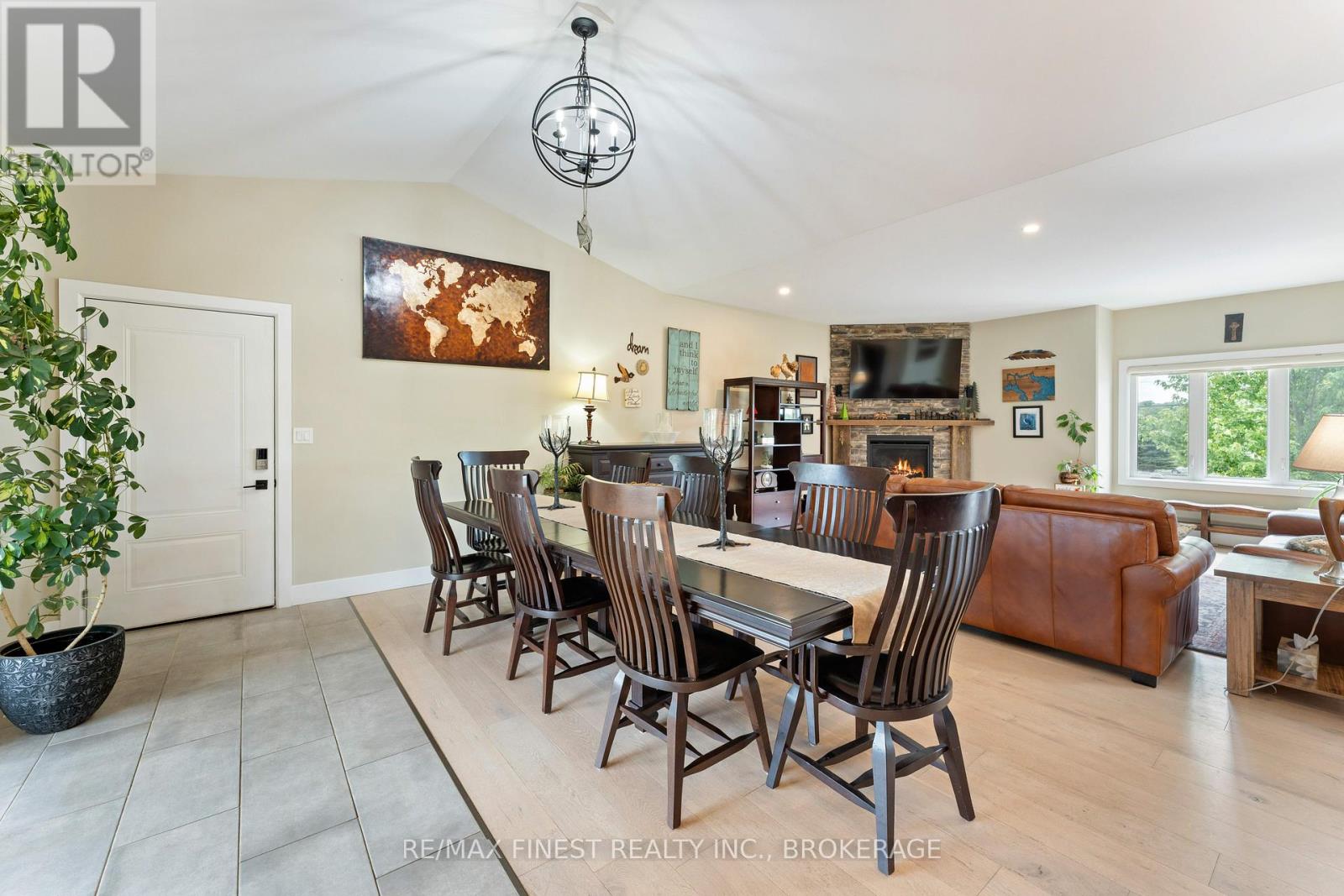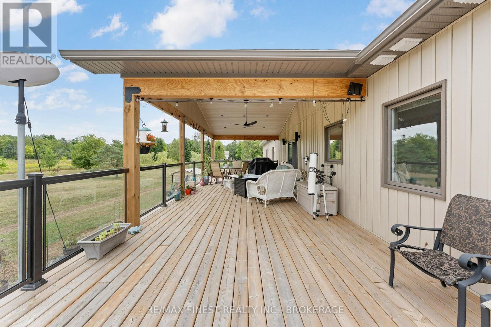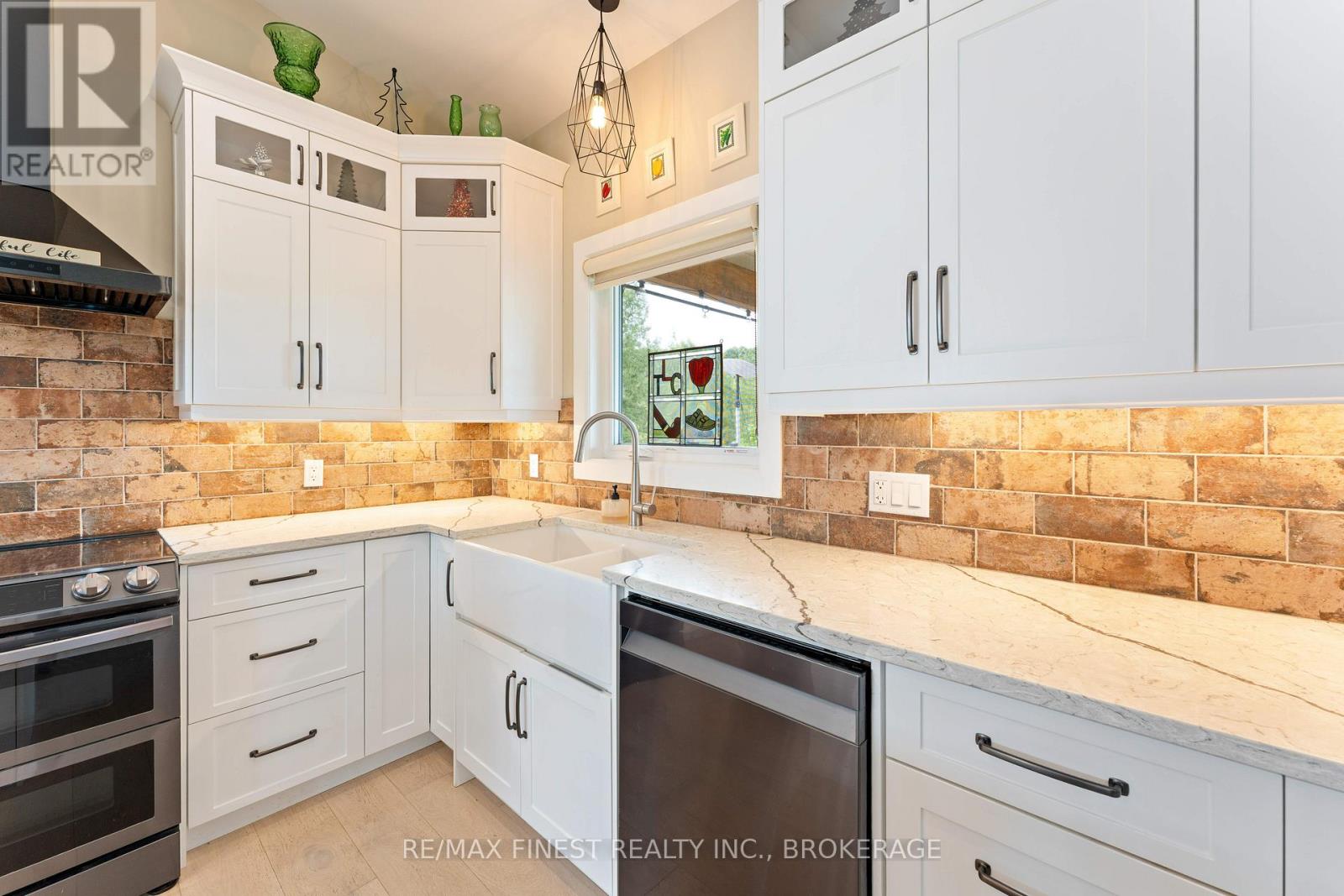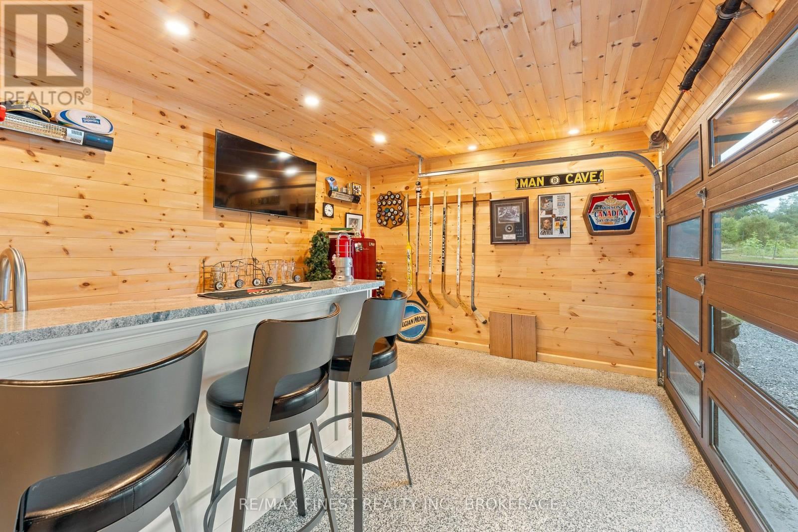 Thoughtfully designed, beautifully maintained, and upgraded throughout, this 5-year-oldbungalow offers a lifestyle as remarkable as its features. From the moment you arrive, the property's presence captivates with 3 acres of professionally landscaped grounds with trees, vibrant gardens, natural stone accents, and a 3-wide paved driveway that gracefully wraps around to the rear garage and patio. Inside, light-filled spaces blend comfort with sophistication. The open-concept main level is anchored by a stunning stone fireplace with a propane insert, creating a warm focal point in the living area. The kitchen showcases stone countertops, stainless steel appliances, and picturesque views of the private backyard. The primary suite is a retreat of its own, featuring a 4-piece ensuite with built-in vanity, walk-in closet, additional closet, and patio doors leading to a stamped-concrete balcony and an expansive 15x64' deck. A 30' section of this outdoor haven is fully covered, featuring a ceiling fan, pot lights, electrical outlets, and BBQ hookup - the perfect setting for morning coffee or evening gatherings. Two additional bedrooms and a 4-piece bath complete the main level. The lower level expands the possibilities with a large rec room, spacious bedroom, a separate den/home office, a 3piece bathroom, generous storage, a walk-out to the yard, and direct access to the lower garage. This two-level heated garage with six bays finished in epoxy provides endless options for a home workshop, car collection, or recreational toys. A dedicated backyard bar room, with a wet bar, epoxy flooring and a roll-up glass garage door opens to the patio below the deck, offering a distinctive venue for year-round entertaining. A 20KW Generac generator ensures peace of mind in all seasons. Positioned between Harrowsmith and Sydenham, this home combines the tranquility of rural living with access to local amenities and only 20 minutes to Kingston. (id:52904)