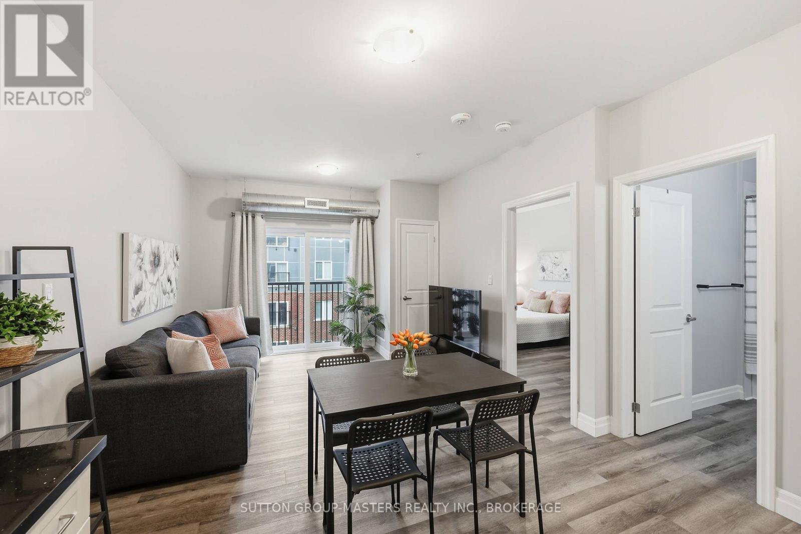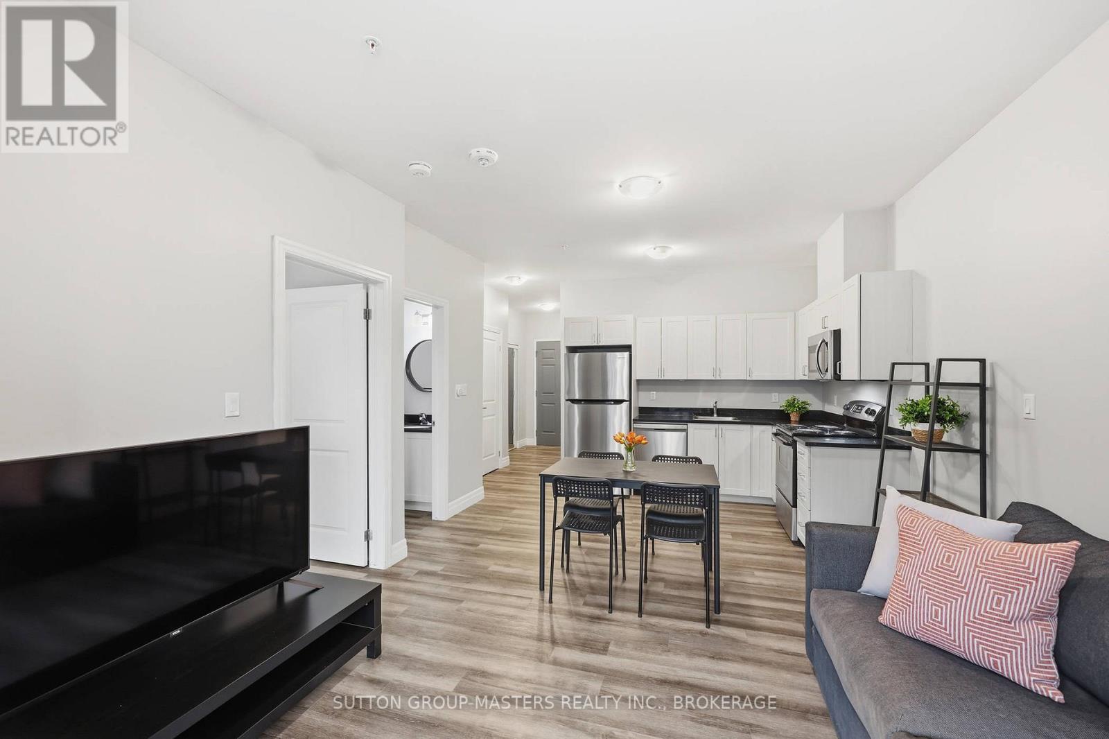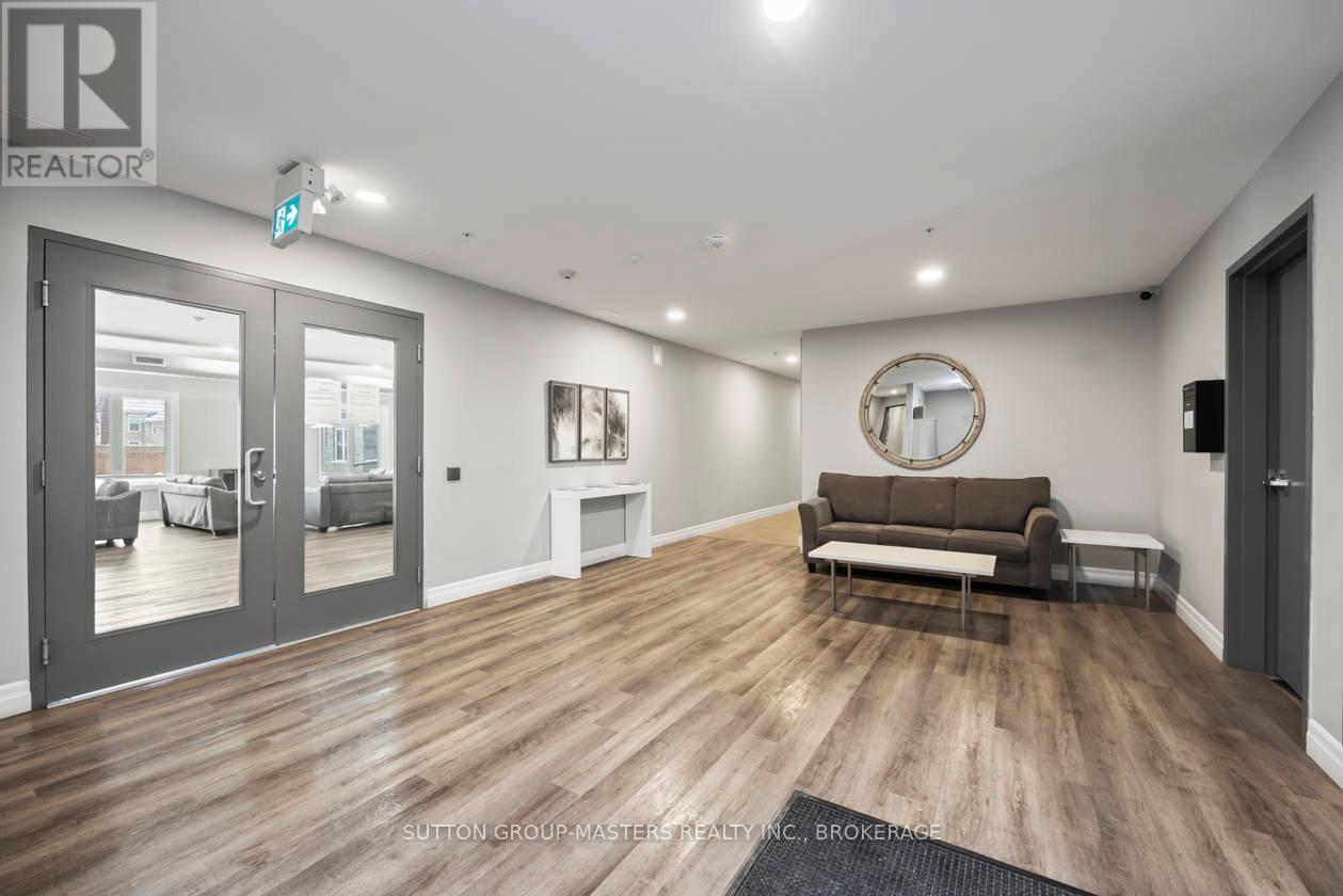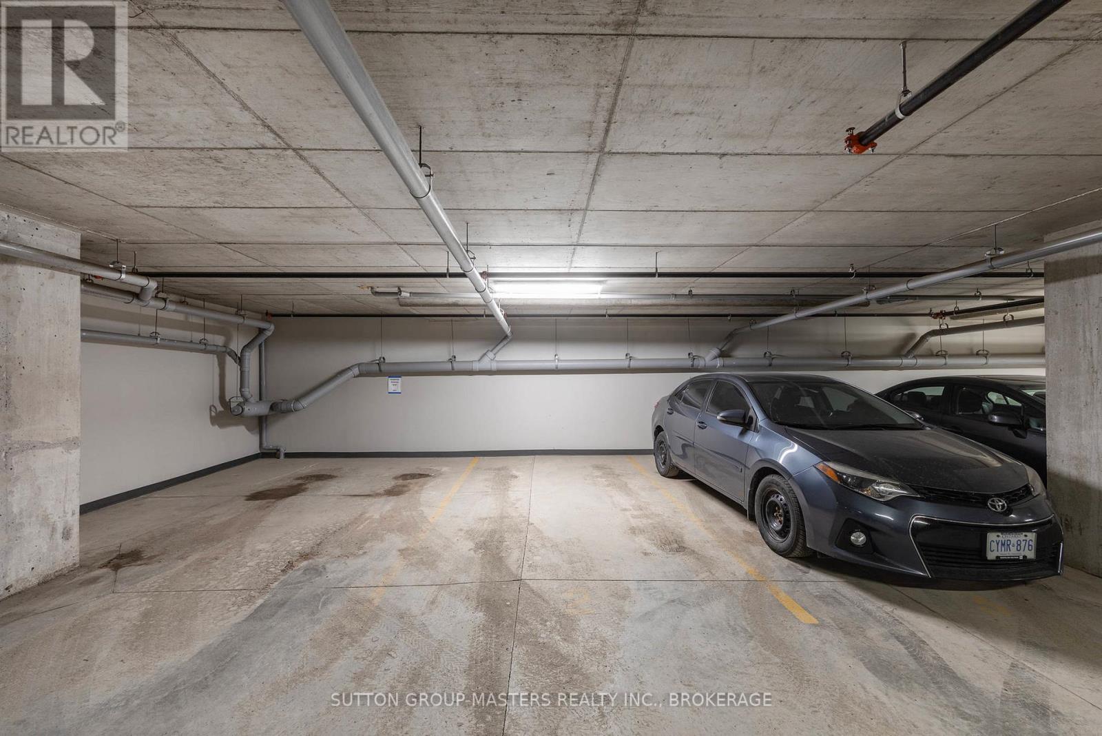 $353.98 MonthlyPrime location in one of Kingston's newer, meticulously managed condominium buildings, just a short walk to Queen's University and all the amenities of the Limestone City's vibrant downtown core. Situated on the desirable 4th floor, this bright and inviting unit offers a fantastic open-concept layout with soaring ceilings, durable laminate flooring, and the convenience of in-suite laundry. Well maintained throughout, the space features neutral décor, stainless steel kitchen appliances, and gleaming quartz countertops in both the kitchen and bathroom. Natural light pours in through the Juliette balcony, offering a pleasant view overlooking the courtyard. This unit also includes exclusive deeded parking in the secure underground garage, conveniently located just steps from the elevator. The building is well equipped with secure front entry, a fitness room, a bookable party room, and an expansive rooftop terrace complete with BBQs - perfect for enjoying time with friends during the warmer months. With easy access to public transit, restaurants, shops, and parks, this is an ideal opportunity for busy professionals or students seeking a low-maintenance lifestyle. All furniture and kitchenware are negotiable, making this a truly move-in-ready option. Come see it for yourself! (id:52904)
