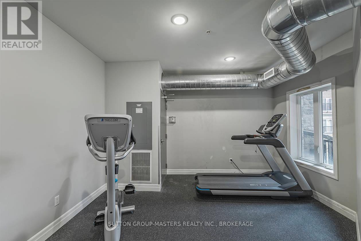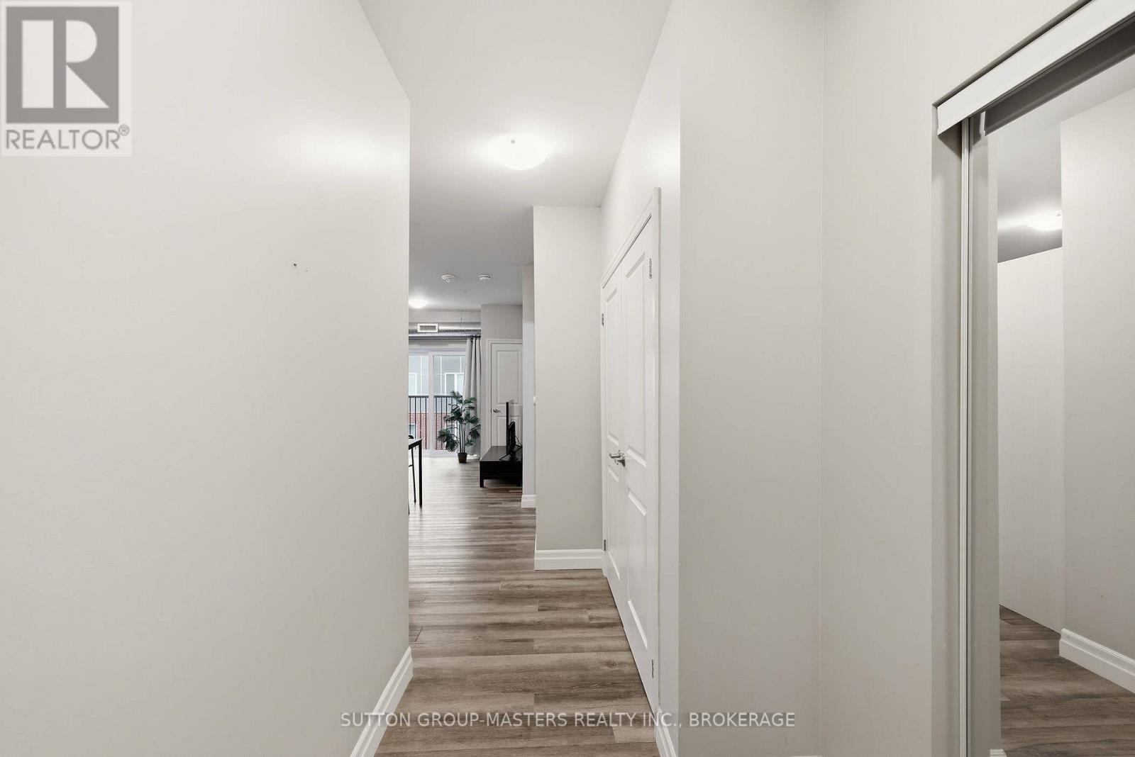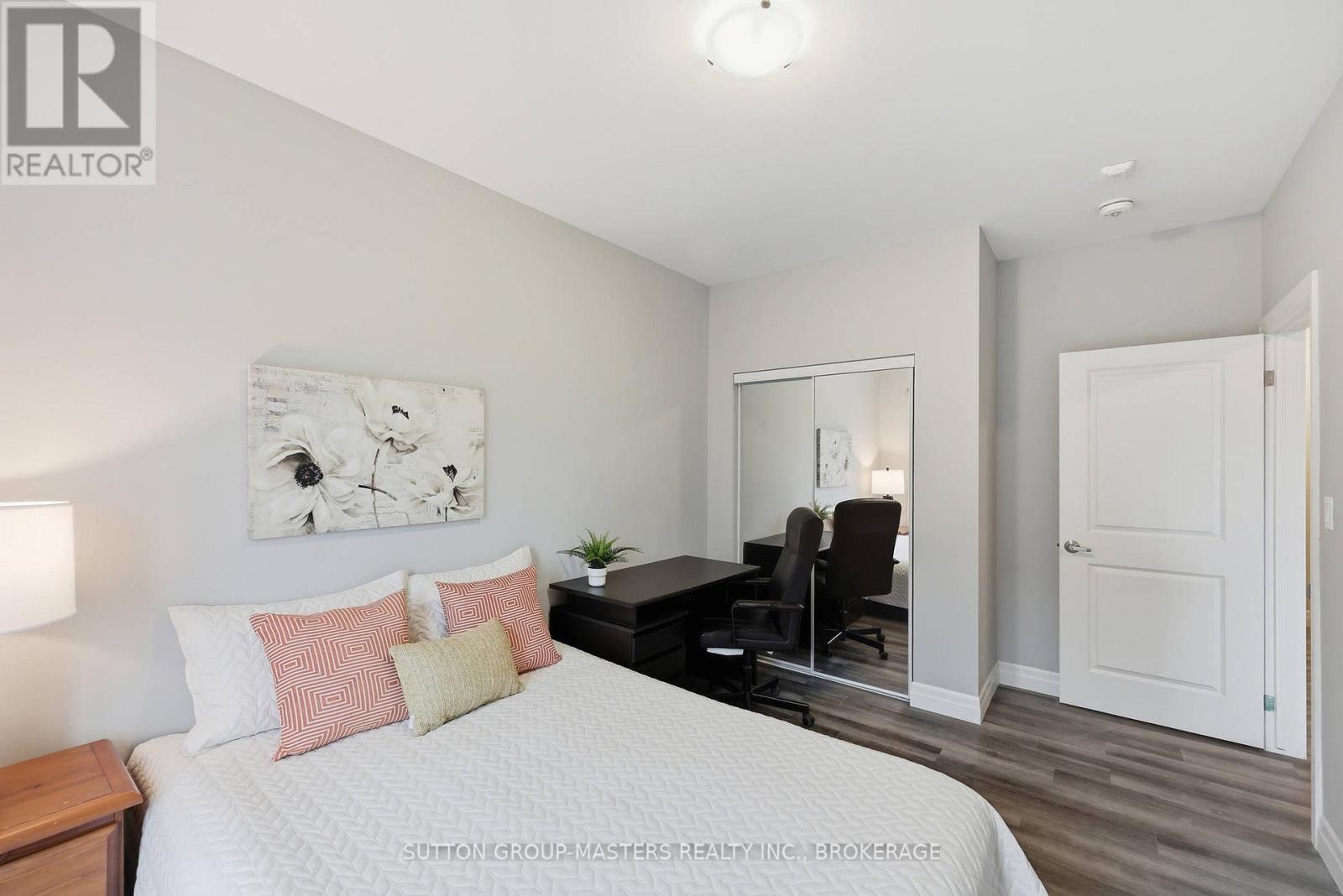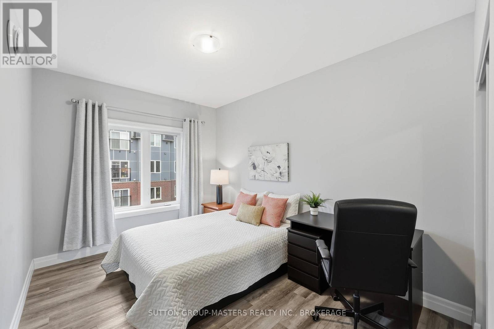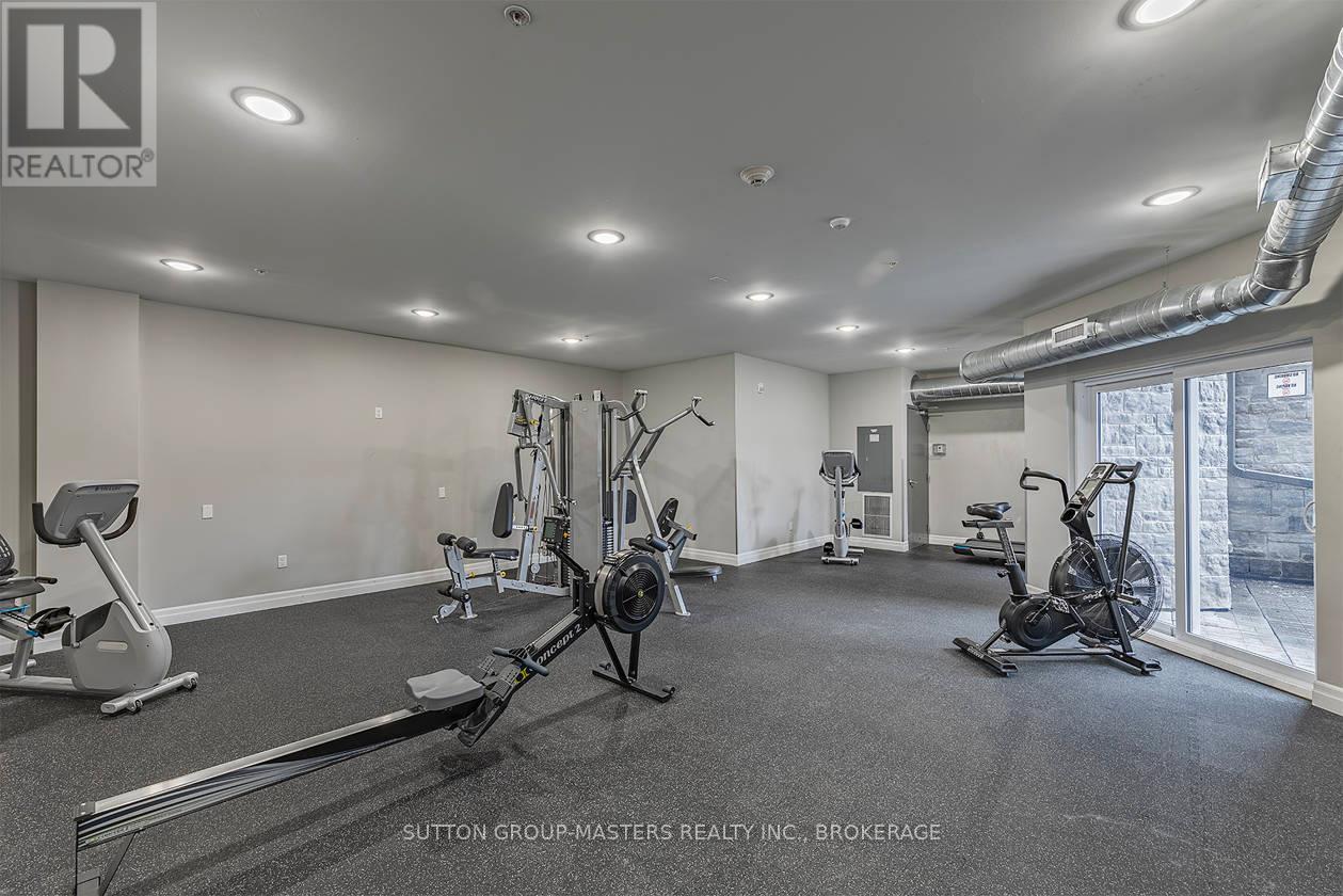 $353.98 MonthlyPrime location in one of Kingston's newer, meticulously managed condominium buildings, just a short walk to Queen's University and all the amenities of the Limestone City's vibrant downtown core. Situated on the desirable 4th floor, this bright and inviting unit offers a fantastic open-concept layout with soaring ceilings, durable laminate flooring, and the convenience of in-suite laundry. Well maintained throughout, the space features neutral décor, stainless steel kitchen appliances, and gleaming quartz countertops in both the kitchen and bathroom. Natural light pours in through the Juliette balcony, offering a pleasant view overlooking the courtyard. This unit also includes exclusive deeded parking in the secure underground garage, conveniently located just steps from the elevator. The building is well equipped with secure front entry, a fitness room, a bookable party room, and an expansive rooftop terrace complete with BBQs - perfect for enjoying time with friends during the warmer months. With easy access to public transit, restaurants, shops, and parks, this is an ideal opportunity for busy professionals or students seeking a low-maintenance lifestyle. All furniture and kitchenware are negotiable, making this a truly move-in-ready option. Come see it for yourself! (id:52904)