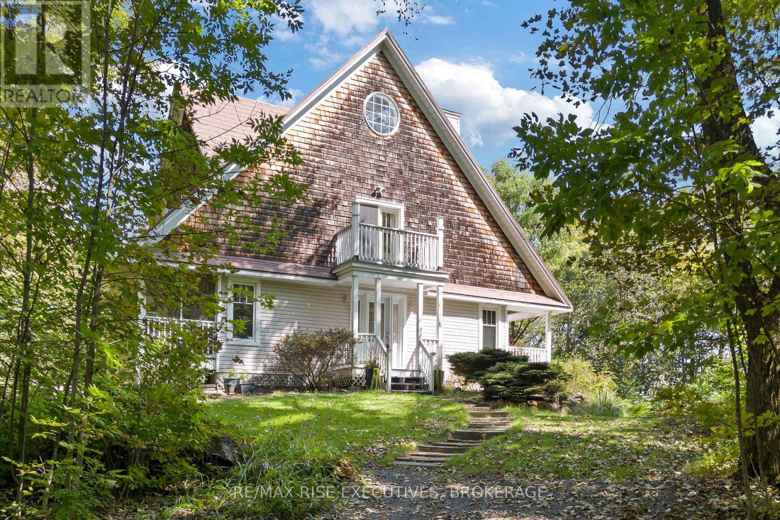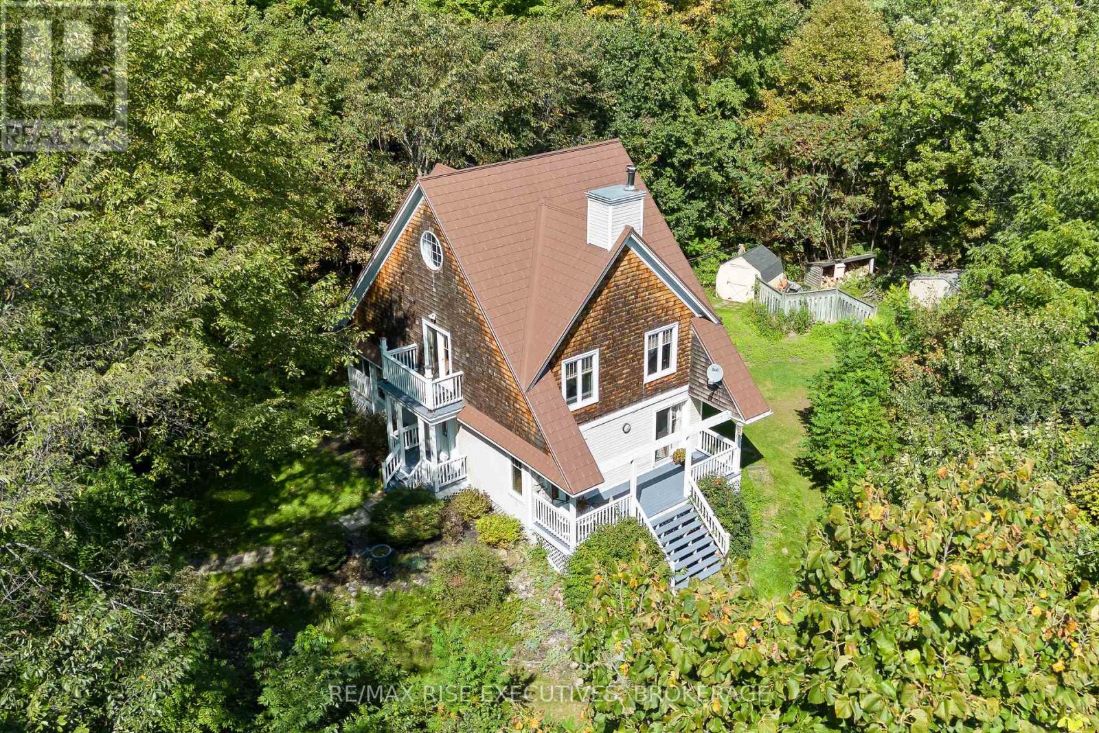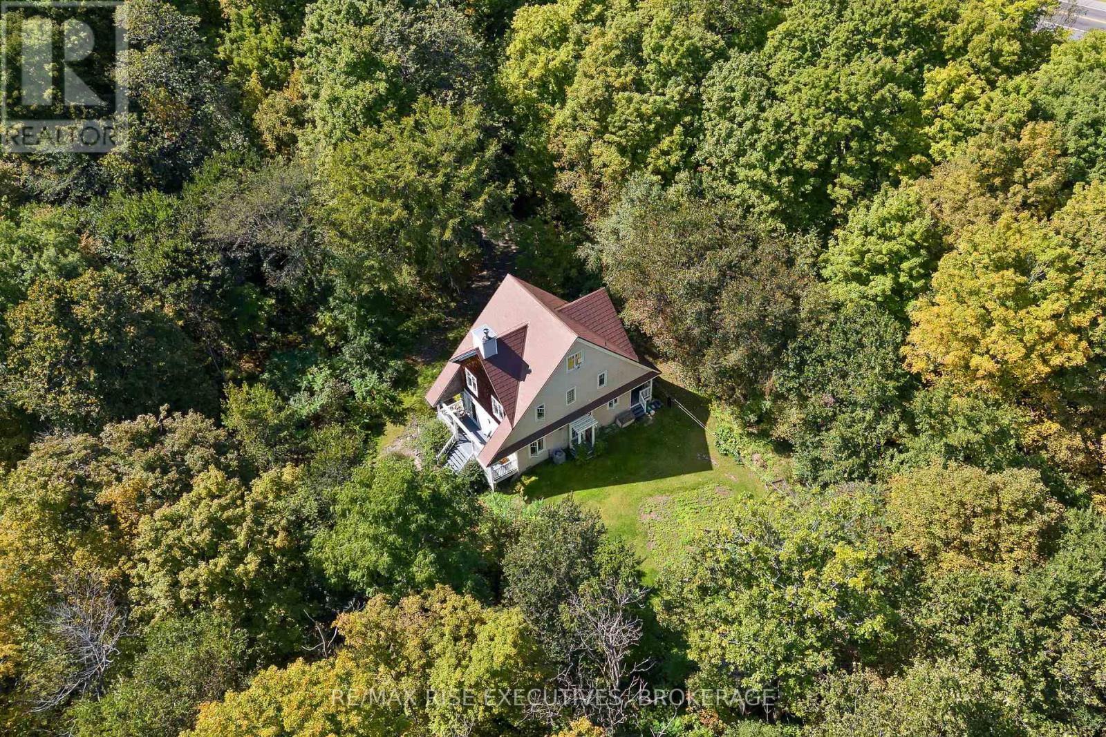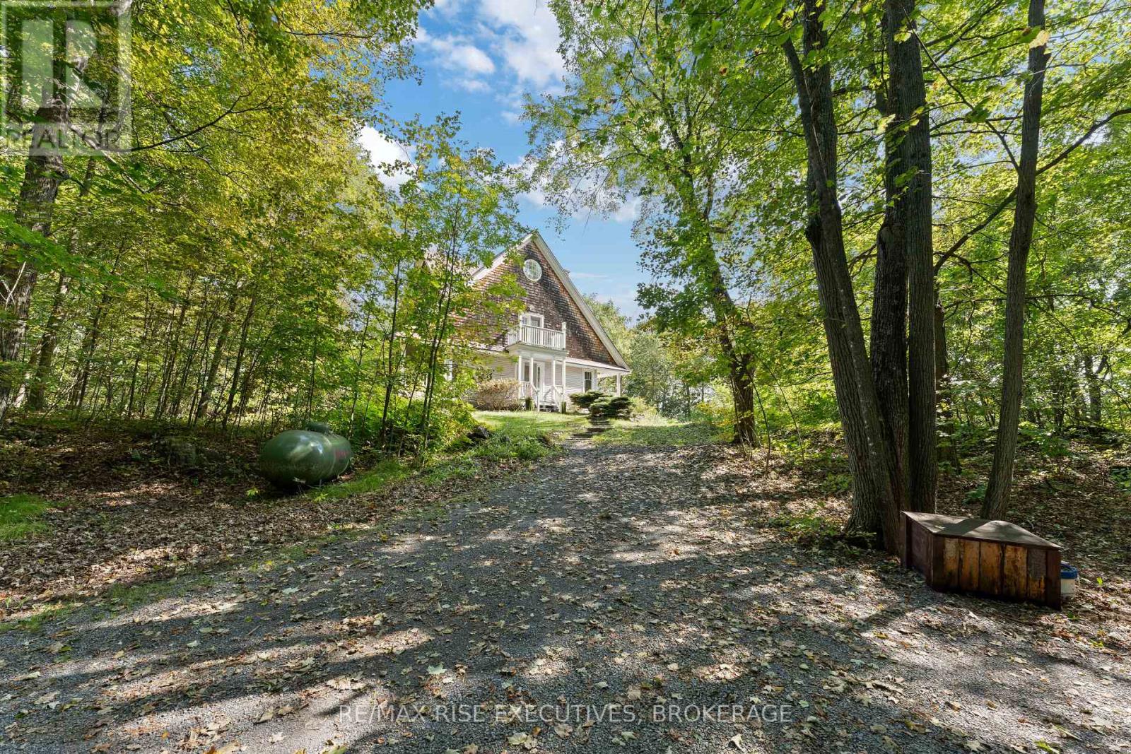 Welcome to 5209 Highway 15, a unique 3-storey home offering 1,900+ square feet of beautifully designed living space. This 2-bedroom (with potential to be updated with a simple addition to add an additional bedroom on the main level) 3-bathroom retreat sits on a hilltop, surrounded by nearly 24 acres of lush forest, creating a private oasis just 15 minutes from downtown Kingston via a straight drive along Highway 15. A winding, tree-lined driveway leads to this secluded property, blending rustic charm with modern convenience. Built in 2000, this home combines the feel of a luxury mountain retreat with practical, durable finishes. Hardwood floors flow throughout the house, and vaulted ceilings add to the sense of space and openness. The great room, complete with an authentic wood-burning fireplace, serves as the heart of the home. Its natural warmth and character make it perfect for cozy gatherings. A striking spiral staircase connects the 3rd floor, leading up to a treetop view from the top level, making you feel truly connected to nature. A screened-in porch provides a tranquil spot to enjoy your morning coffee, surrounded by the peaceful sounds of the forest. The property's nearly 24 acres offer ample space for outdoor activities, with the potential to add an external garage if desired. The metal roof, built for longevity, ensures minimal maintenance for years to come. With its treehouse feel, private location, and proximity to Kingston, 5209 Highway 15 offers the perfect blend of seclusion and convenience. Whether for full-time living or a peaceful getaway, this home is a rare gem. Vendor financing options are available. (id:52904)