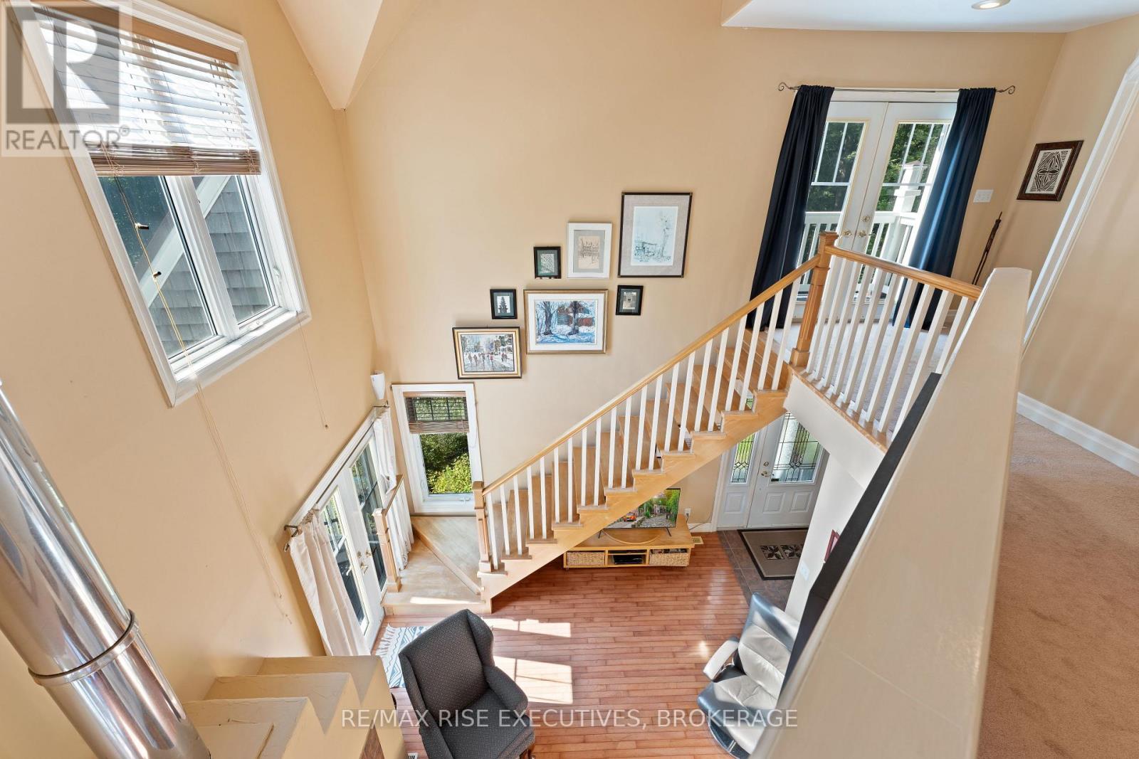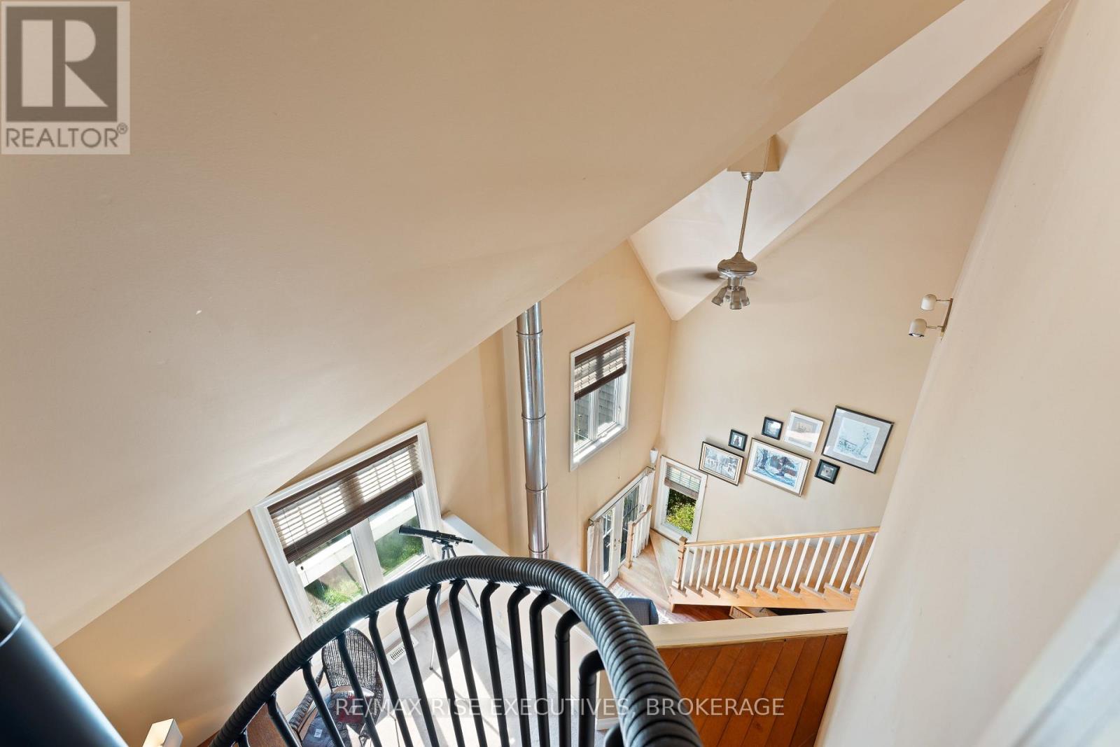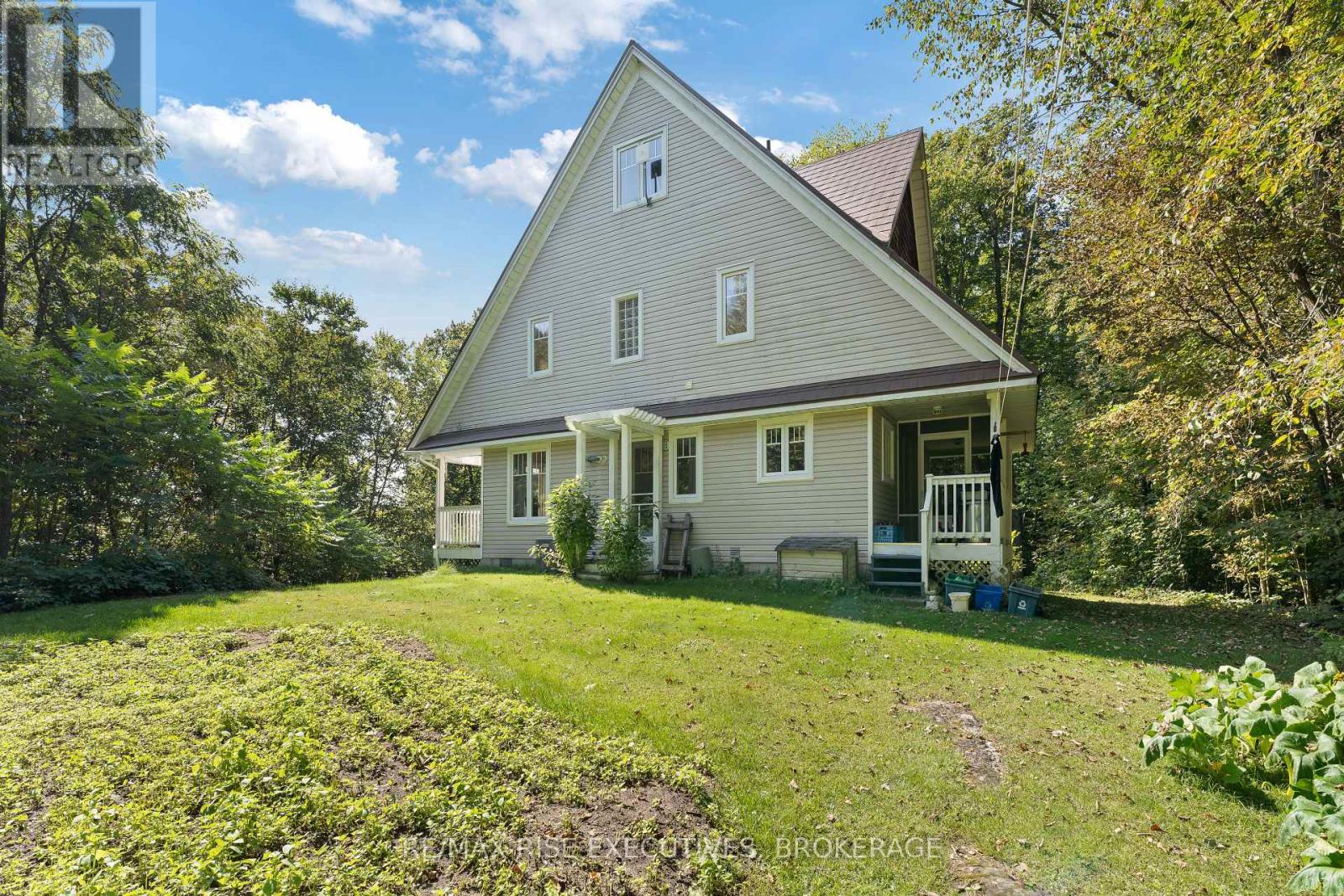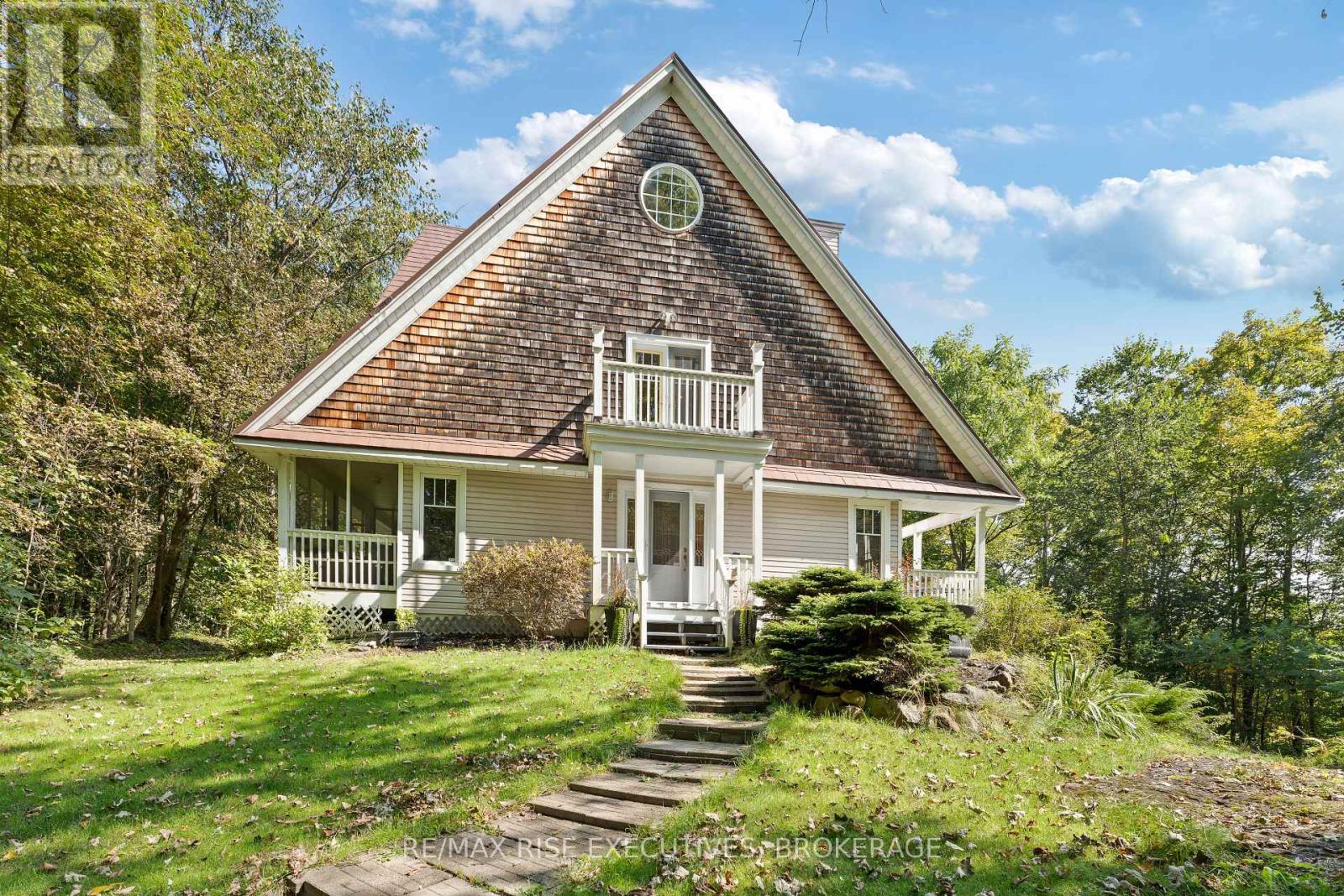 Welcome to 5209 Highway 15, a unique 3-storey home offering 1,900+ square feet of beautifully designed living space. This 2-bedroom (with potential to be updated with a simple addition to add an additional bedroom on the main level) 3-bathroom retreat sits on a hilltop, surrounded by nearly 24 acres of lush forest, creating a private oasis just 15 minutes from downtown Kingston via a straight drive along Highway 15. A winding, tree-lined driveway leads to this secluded property, blending rustic charm with modern convenience. Built in 2000, this home combines the feel of a luxury mountain retreat with practical, durable finishes. Hardwood floors flow throughout the house, and vaulted ceilings add to the sense of space and openness. The great room, complete with an authentic wood-burning fireplace, serves as the heart of the home. Its natural warmth and character make it perfect for cozy gatherings. A striking spiral staircase connects the 3rd floor, leading up to a treetop view from the top level, making you feel truly connected to nature. A screened-in porch provides a tranquil spot to enjoy your morning coffee, surrounded by the peaceful sounds of the forest. The property's nearly 24 acres offer ample space for outdoor activities, with the potential to add an external garage if desired. The metal roof, built for longevity, ensures minimal maintenance for years to come. With its treehouse feel, private location, and proximity to Kingston, 5209 Highway 15 offers the perfect blend of seclusion and convenience. Whether for full-time living or a peaceful getaway, this home is a rare gem. Vendor financing options are available. (id:52904)