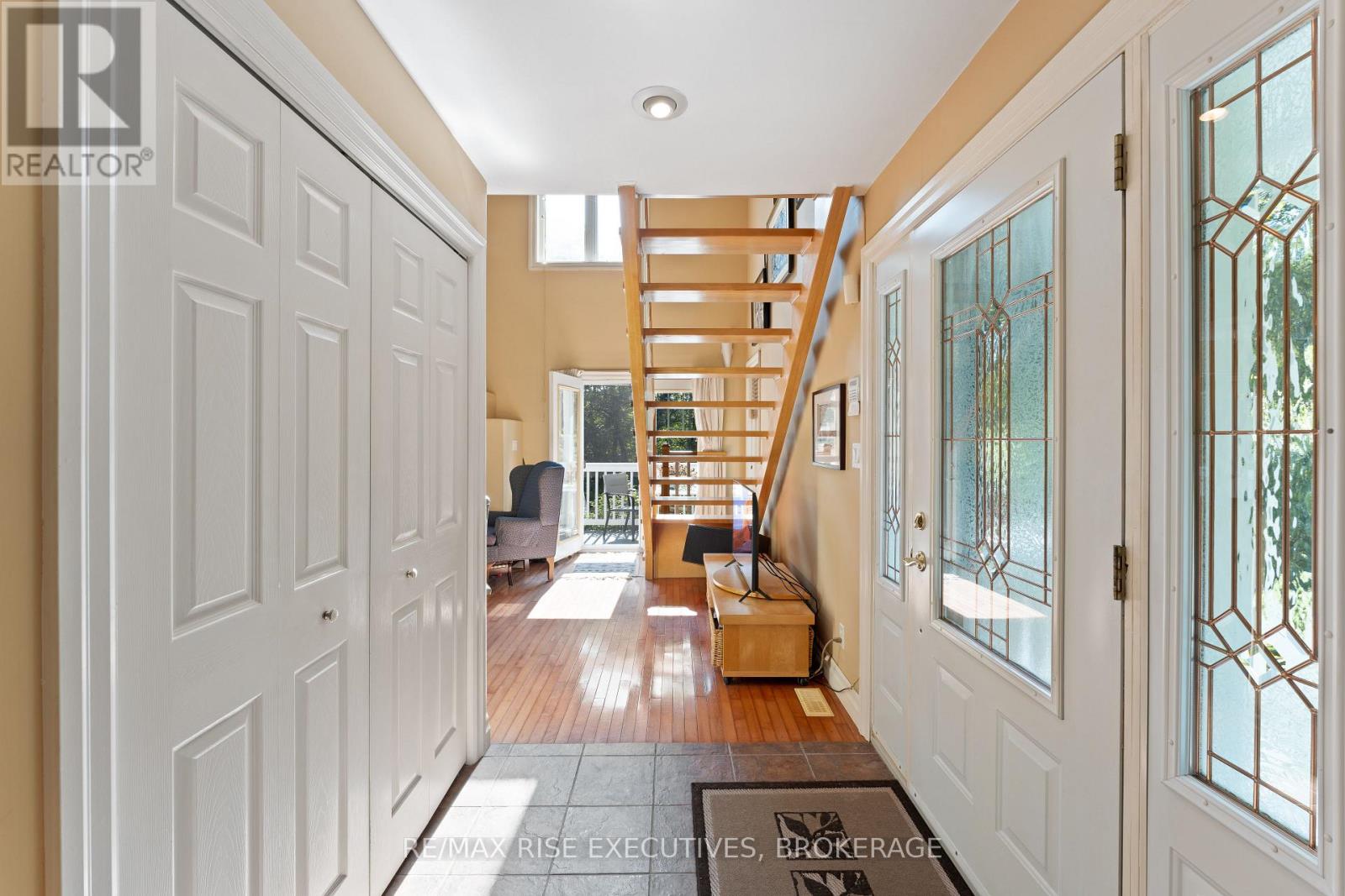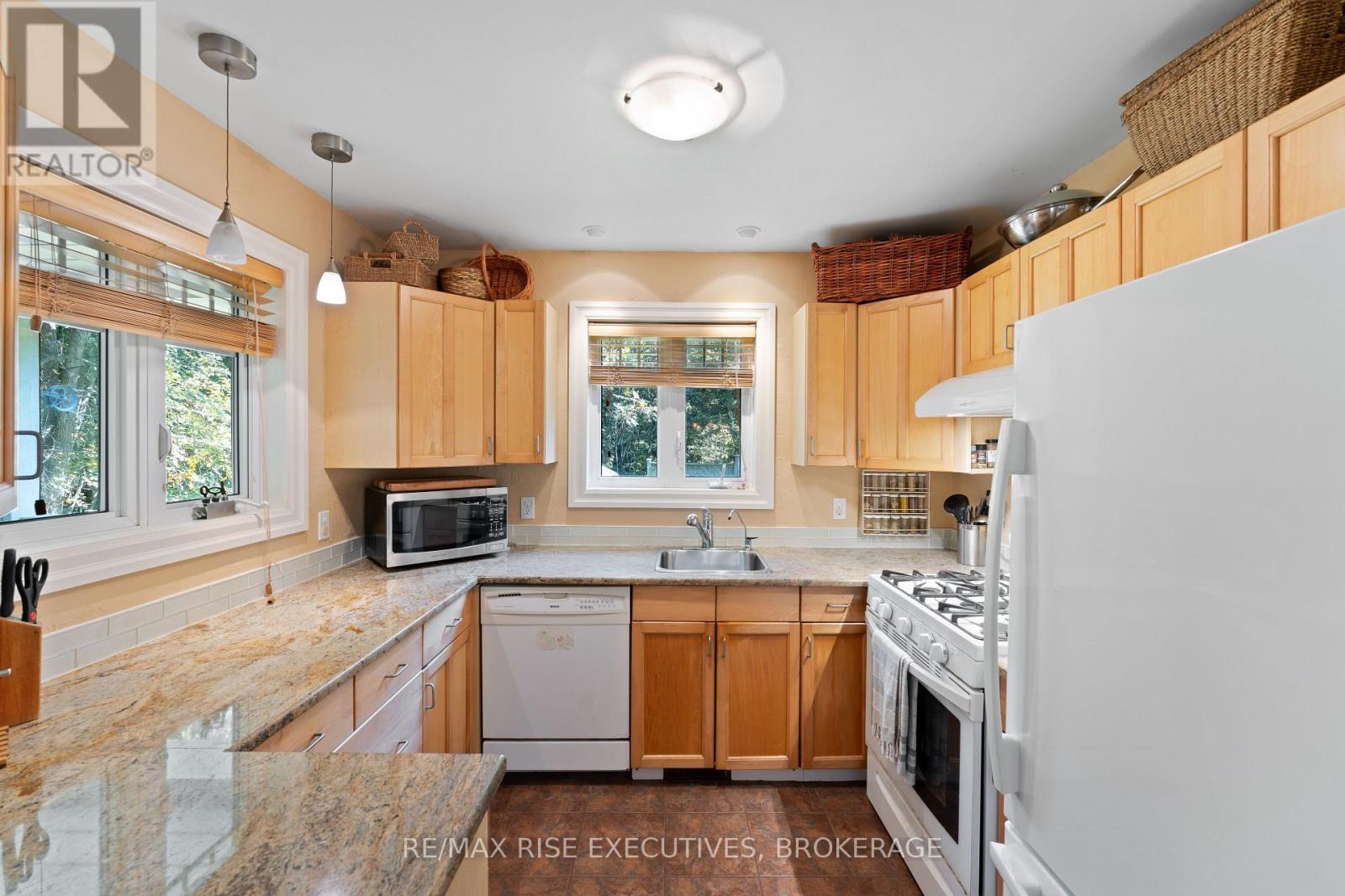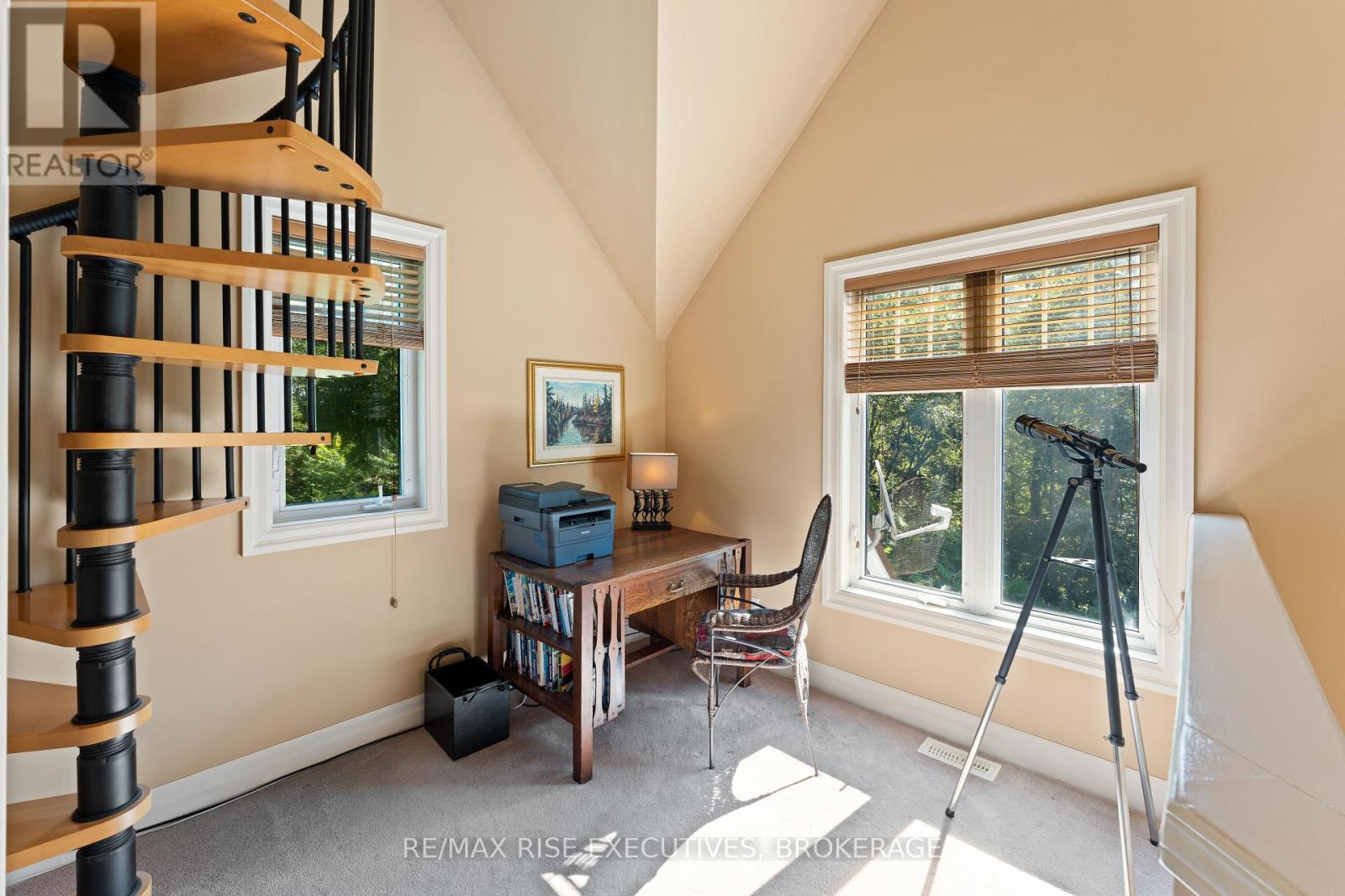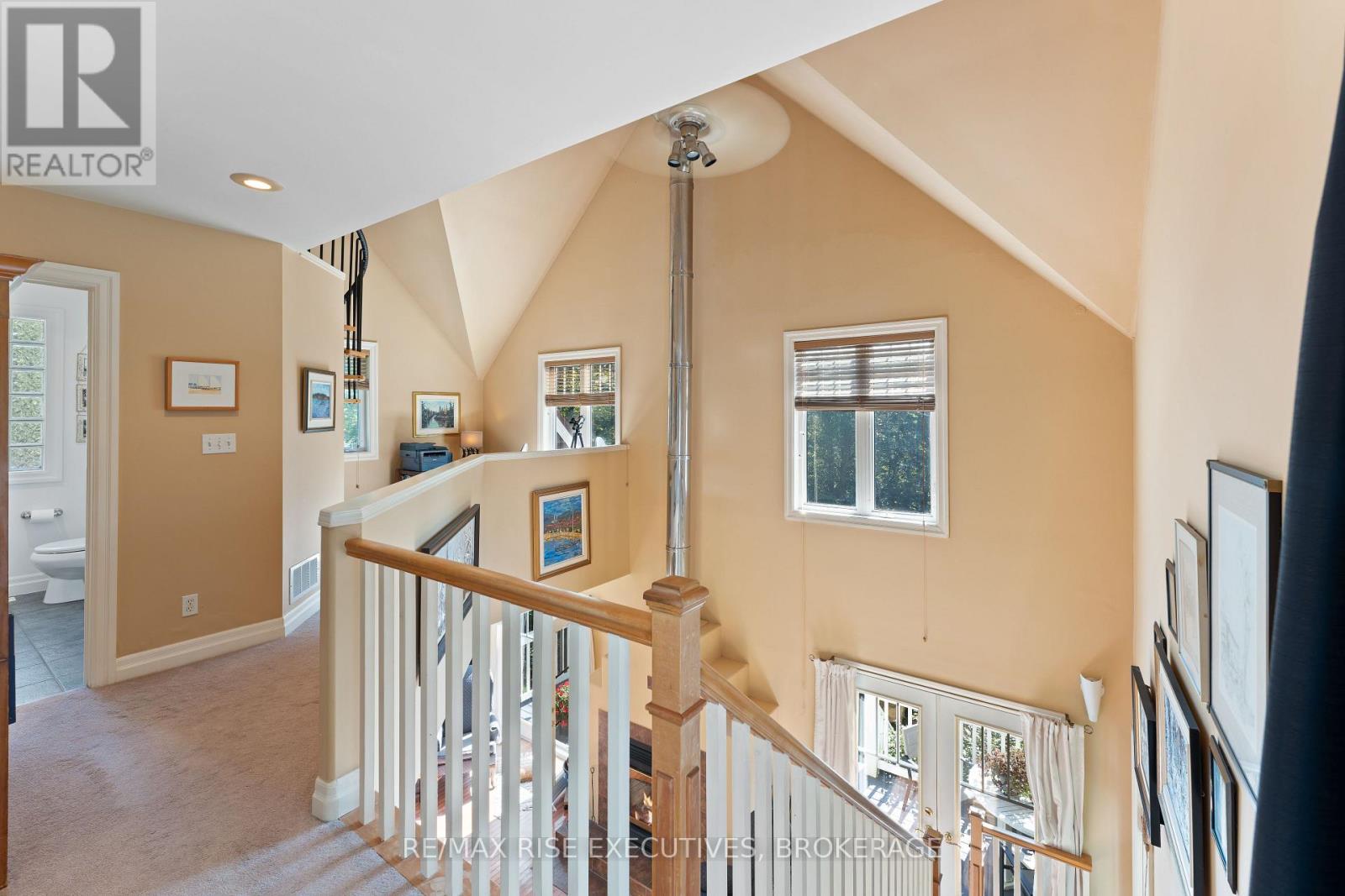 Welcome to 5209 Highway 15, a unique 3-storey home offering 1,900+ square feet of beautifully designed living space. This 2-bedroom (with potential to be updated with a simple addition to add an additional bedroom on the main level) 3-bathroom retreat sits on a hilltop, surrounded by nearly 24 acres of lush forest, creating a private oasis just 15 minutes from downtown Kingston via a straight drive along Highway 15. A winding, tree-lined driveway leads to this secluded property, blending rustic charm with modern convenience. Built in 2000, this home combines the feel of a luxury mountain retreat with practical, durable finishes. Hardwood floors flow throughout the house, and vaulted ceilings add to the sense of space and openness. The great room, complete with an authentic wood-burning fireplace, serves as the heart of the home. Its natural warmth and character make it perfect for cozy gatherings. A striking spiral staircase connects the 3rd floor, leading up to a treetop view from the top level, making you feel truly connected to nature. A screened-in porch provides a tranquil spot to enjoy your morning coffee, surrounded by the peaceful sounds of the forest. The property's nearly 24 acres offer ample space for outdoor activities, with the potential to add an external garage if desired. The metal roof, built for longevity, ensures minimal maintenance for years to come. With its treehouse feel, private location, and proximity to Kingston, 5209 Highway 15 offers the perfect blend of seclusion and convenience. Whether for full-time living or a peaceful getaway, this home is a rare gem. Vendor financing options are available. (id:52904)