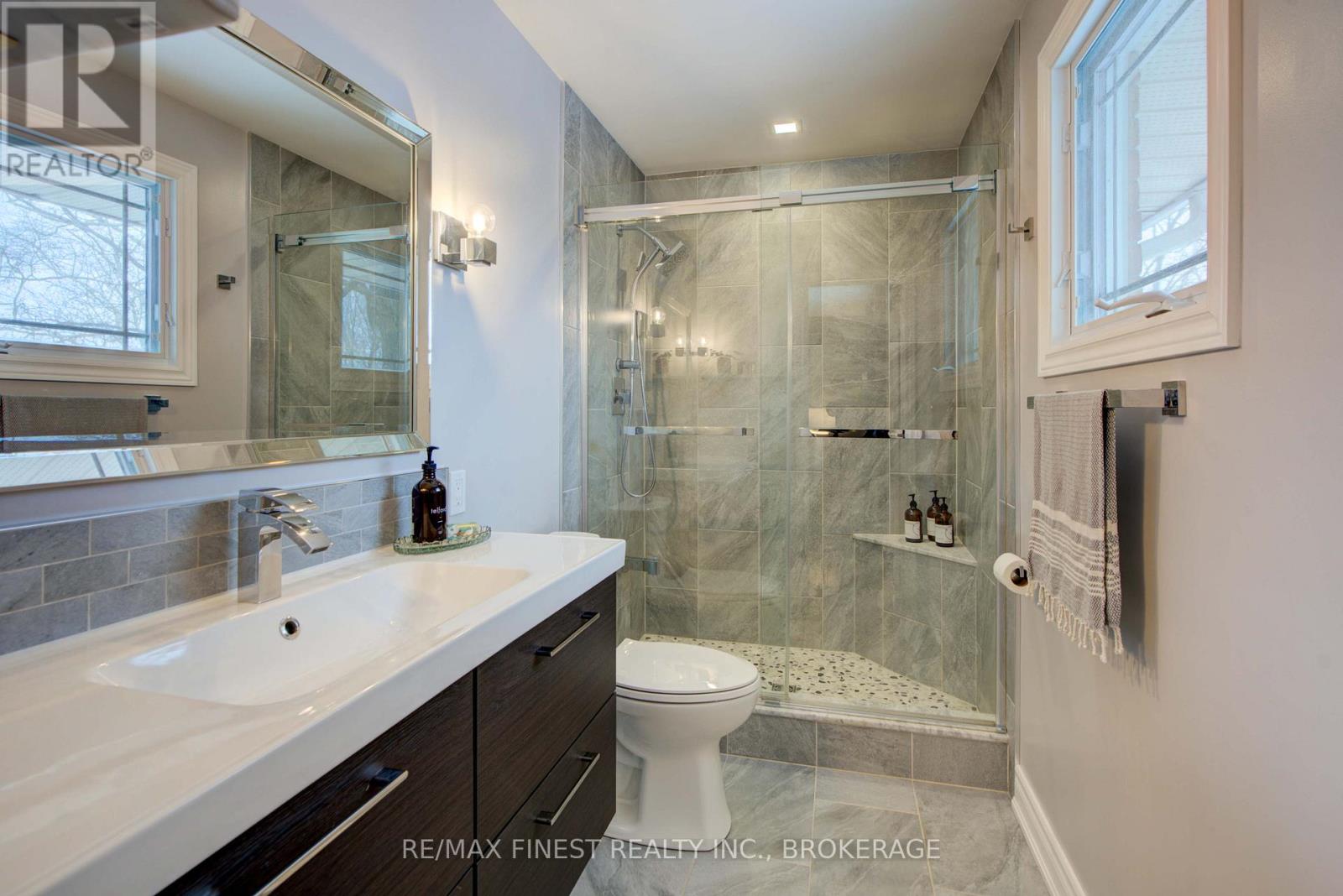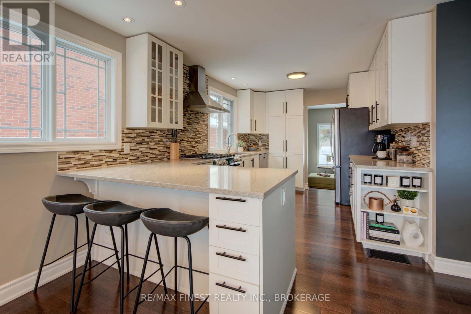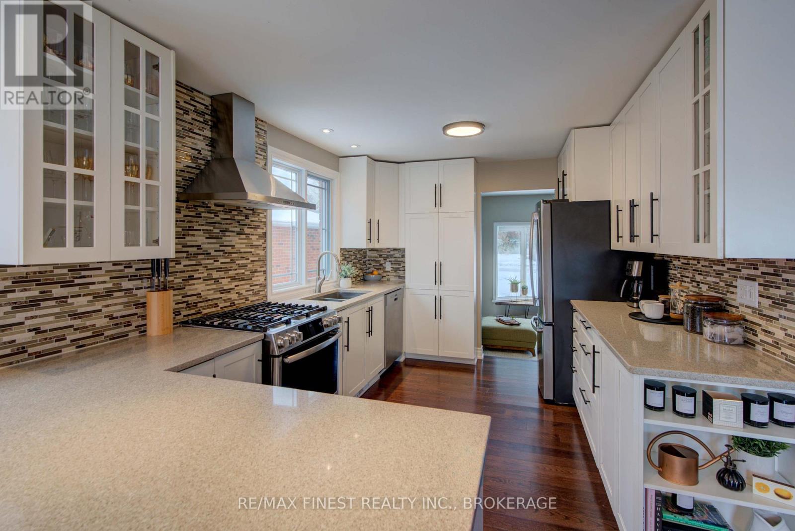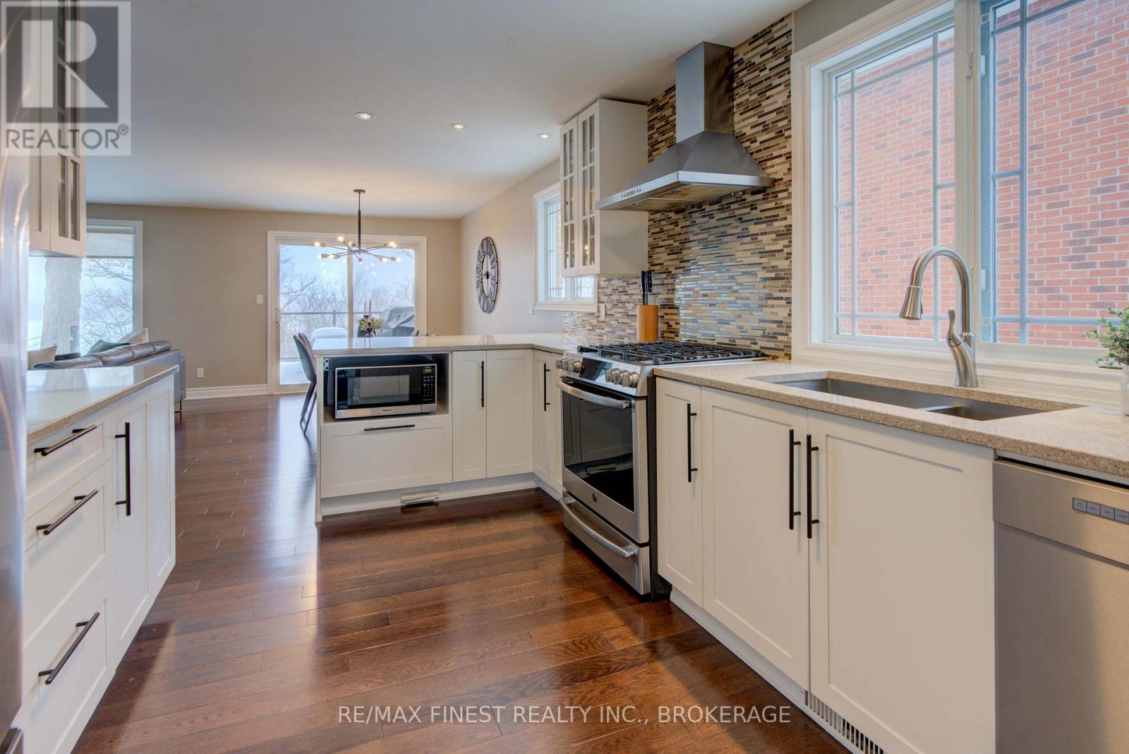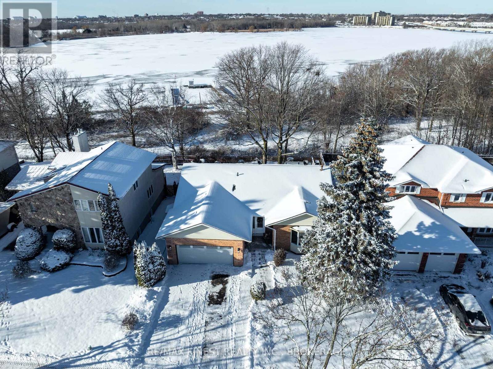 Welcome home to a truly special property, where mornings begin with water views and evenings end with unforgettable sunsets over the Cataraqui River, a UNESCO Heritage Site. Set on a 60-foot-wide lot in one of Kingston's most desirable neighbourhoods, this raised bungalow offers a lifestyle that balances nature, comfort, and convenience. Step outside and you're seconds away from waterfront parks and scenic trails - yet everyday essentials are close at hand. CFB Kingston is within walking distance, an express bus connects you to hospitals and Queen's University, and downtown is just 4 km away. From the moment you enter, the home feels welcoming. A spacious entryway leads into a fully renovated, carpet-free interior where quality finishes and attention to detail are evident throughout. New hardwood floors on the main level and recently updated flooring in the lower level create a timeless, low-maintenance space that's as practical as it is inviting. Every detail of this home has been thoughtfully considered. With abundant storage, three distinct family or gathering areas, and 3+1 bedrooms, there's room to spread out, host friends, or simply enjoy everyday life. The primary bedroom is a peaceful retreat, complete with two walk-in closets and a modern ensuite, one of 3+ washrooms in the house. A double-car garage adds everyday convenience, keeping two vehicles sheltered from weather. Outdoors is where this home especially shines. Perennial gardens and mature trees surround the property, creating a private, serene setting. Relax on the raised Trex composite deck with its privacy wall or gather friends and family on the expansive 25-foot concrete pad - ideal for summer entertaining. What truly sets this property apart is the bright, spacious, and updated in-law suite. With its own separate entrance, private outdoor space, and oversized 44-inch windows, it's perfectly suited for multi-generational living or as an income-generating rental (currently rented for $1,600/month) (id:52904)