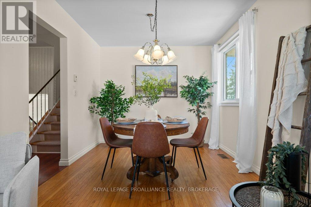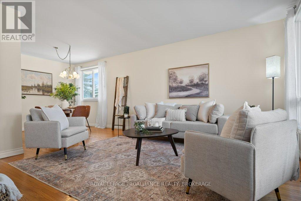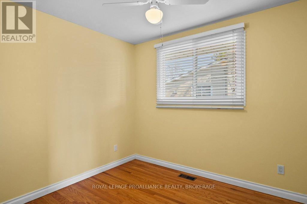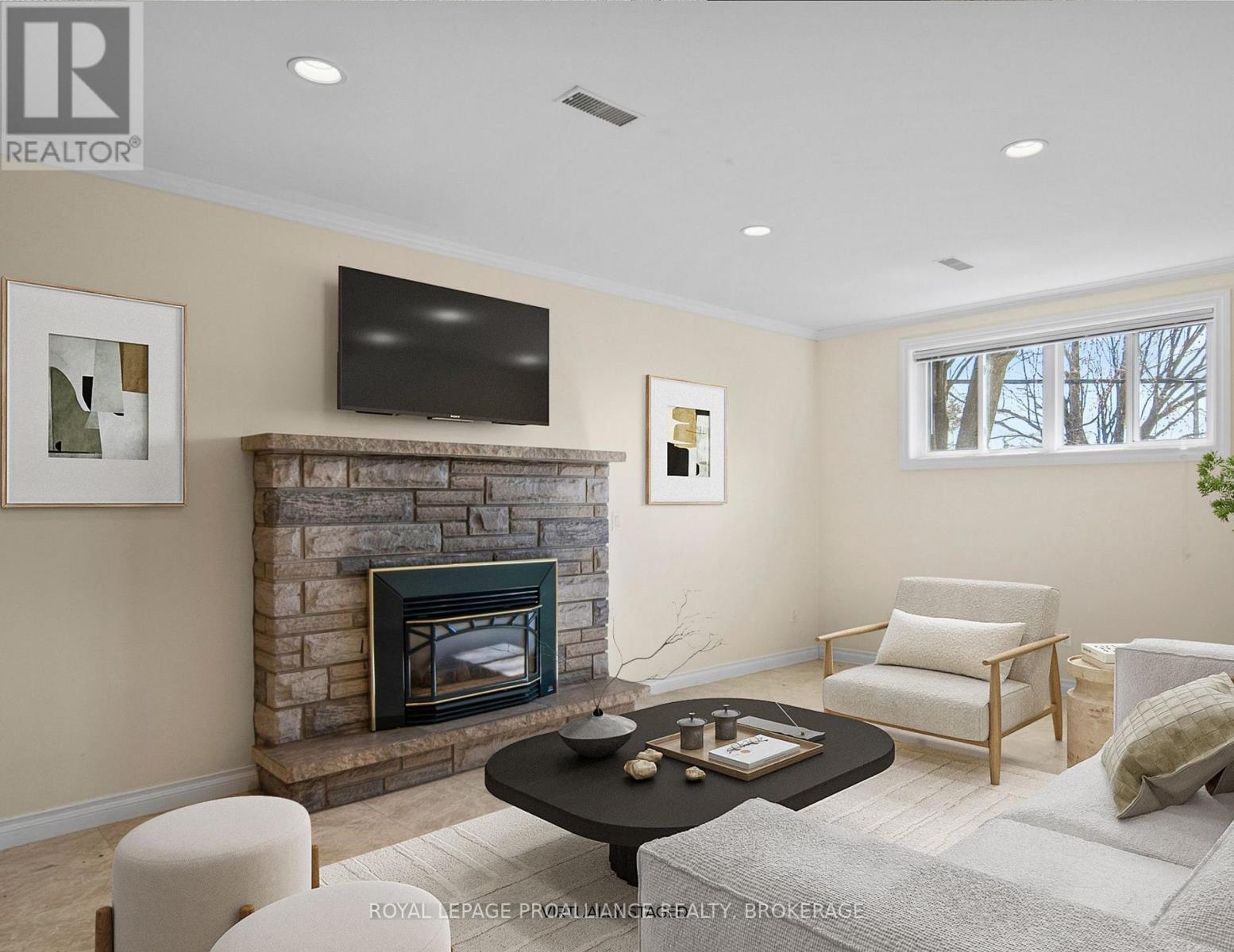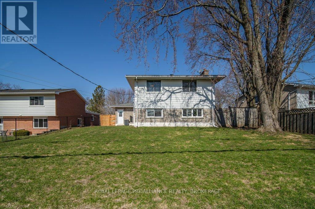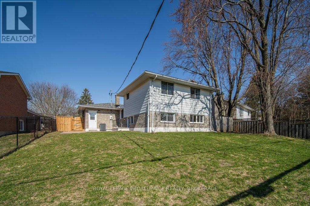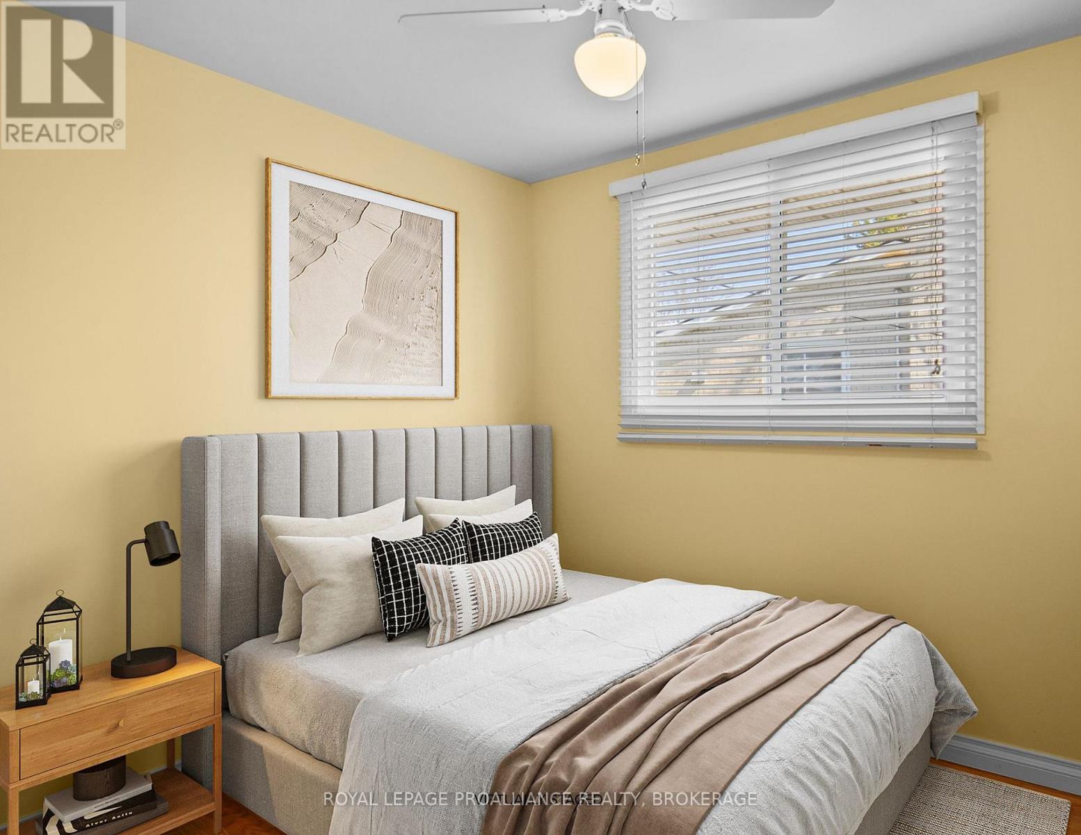 Welcome to this beautifully maintained back split, ideally located in the popular Bayridge Neighbourhood, minutes from schools, public transportation, shopping, amenities, and everyday conveniences. This truly immaculate home offers a main floor boasting a bright and inviting living room and dining area with hardwood flooring, along with a large kitchen offering abundant cabinetry and workspace ideal for everyday living and entertaining. The upper level has two bedrooms, including an oversized primary suite (formerly two bedrooms) that has been transformed into a generous retreat complete with walk-in closet and convenient 2 piece ensuite bathroom. A second bedroom and full main bathroom complete this level. The lower level provides additional living space with a cozy rec room featuring a gas fireplace, a versatile room that could serve as a third bedroom, den, or home office, another 2 piece bathroom and laundry. The basement level remains unfinished, offering excellent storage. Outside, enjoy a large, fenced yard with no rear neighbours great for kids, pets, or outdoor gatherings and an interlocking stone patio perfect for barbecuing and Summer entertaining. The home also includes an attached garage and an expansive driveway with ample parking. Extensively updated over the years including roof, furnace, air conditioning, windows, and fencing, this home is truly move-in ready. Select photos have been virtually staged to help showcase the property's potential and demonstrate possible furniture placement and room functionality. (id:52904)