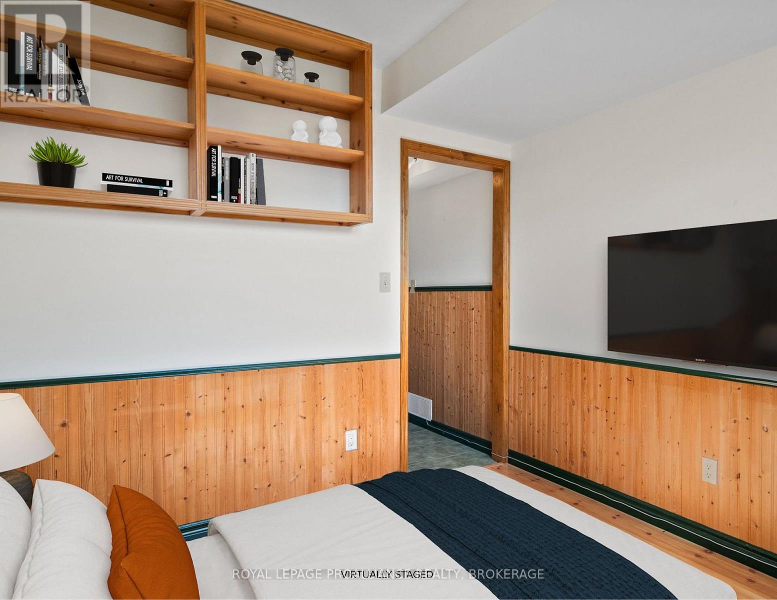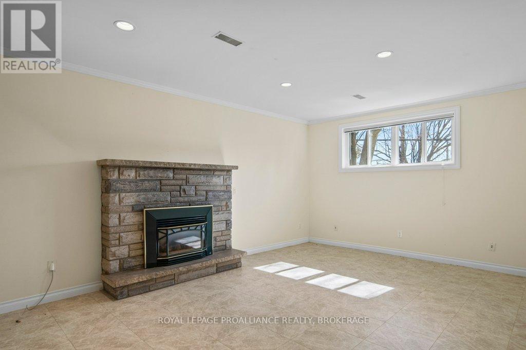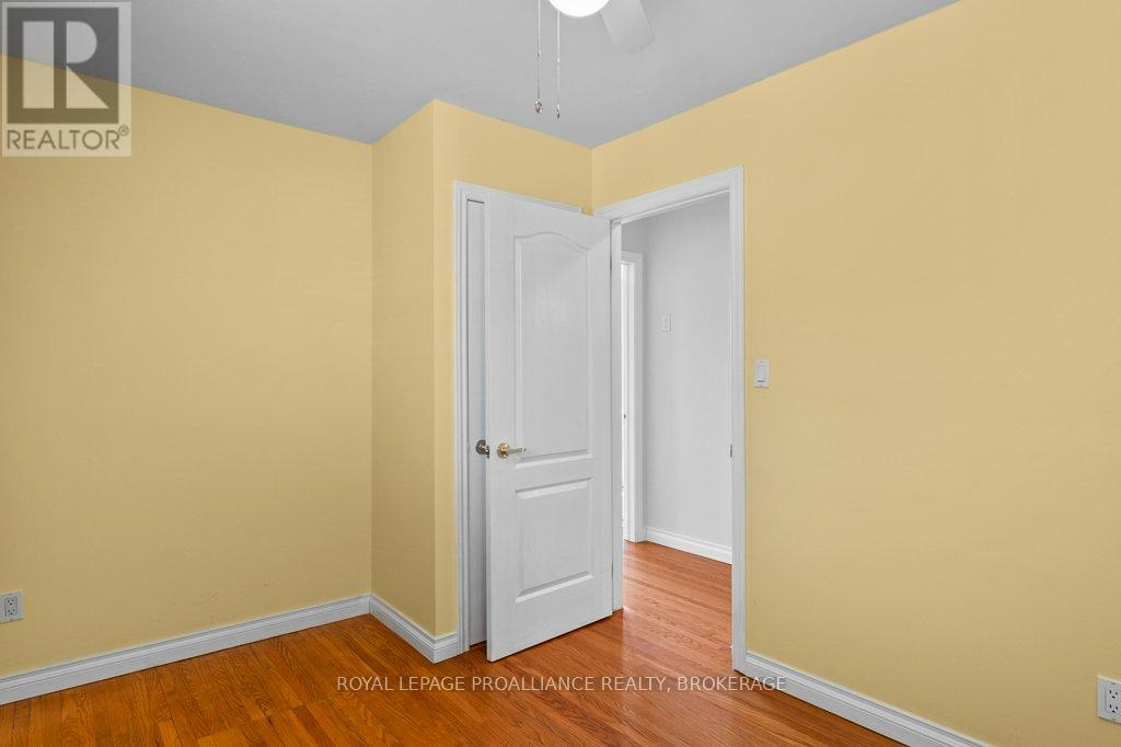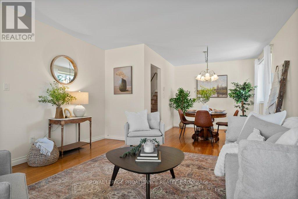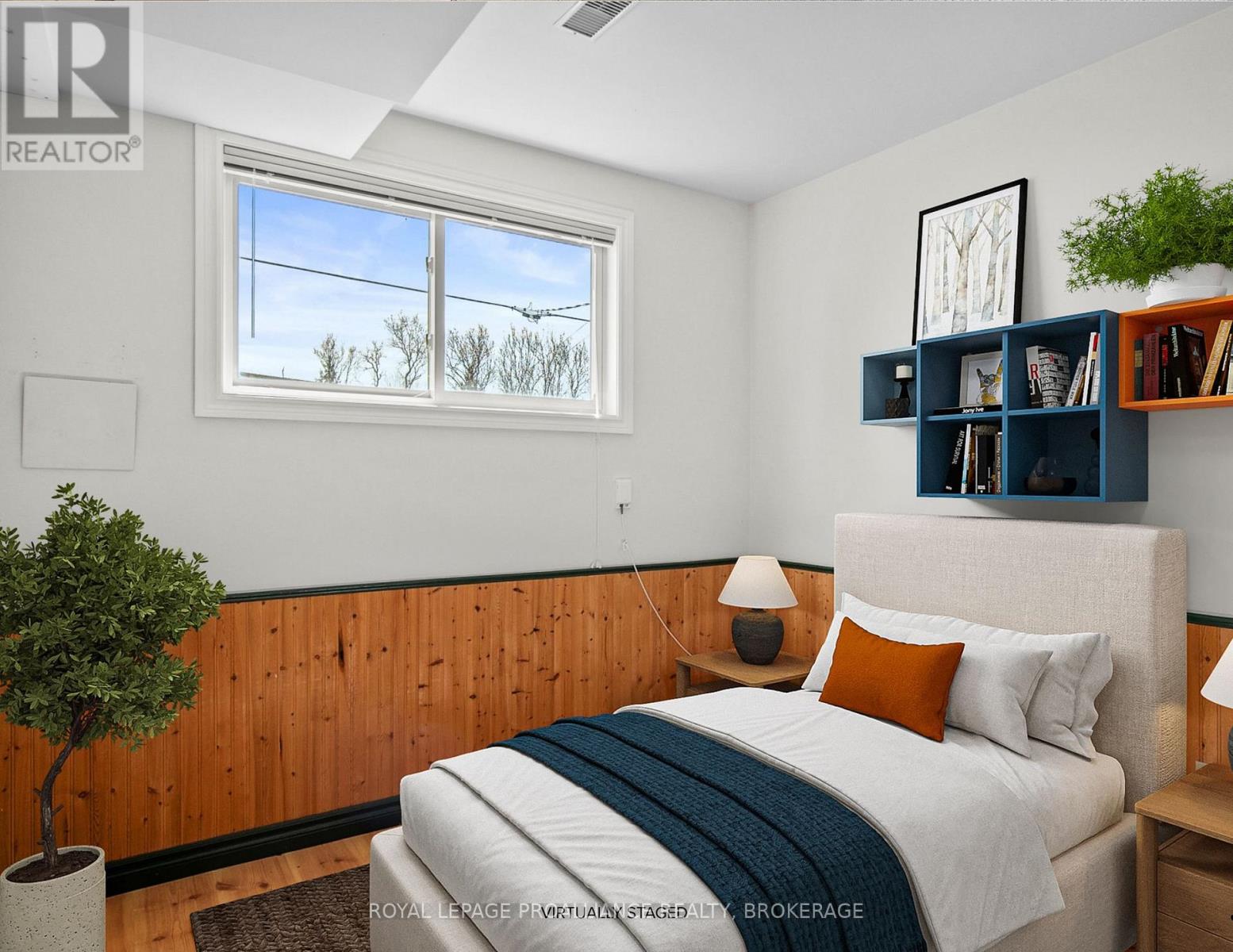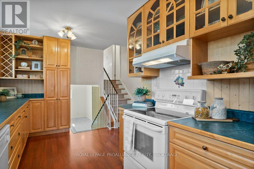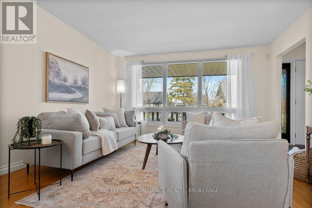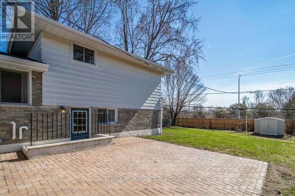 Welcome to this beautifully maintained back split, ideally located in the popular Bayridge Neighbourhood, minutes from schools, public transportation, shopping, amenities, and everyday conveniences. This truly immaculate home offers a main floor boasting a bright and inviting living room and dining area with hardwood flooring, along with a large kitchen offering abundant cabinetry and workspace ideal for everyday living and entertaining. The upper level has two bedrooms, including an oversized primary suite (formerly two bedrooms) that has been transformed into a generous retreat complete with walk-in closet and convenient 2 piece ensuite bathroom. A second bedroom and full main bathroom complete this level. The lower level provides additional living space with a cozy rec room featuring a gas fireplace, a versatile room that could serve as a third bedroom, den, or home office, another 2 piece bathroom and laundry. The basement level remains unfinished, offering excellent storage. Outside, enjoy a large, fenced yard with no rear neighbours great for kids, pets, or outdoor gatherings and an interlocking stone patio perfect for barbecuing and Summer entertaining. The home also includes an attached garage and an expansive driveway with ample parking. Extensively updated over the years including roof, furnace, air conditioning, windows, and fencing, this home is truly move-in ready. Select photos have been virtually staged to help showcase the property's potential and demonstrate possible furniture placement and room functionality. (id:52904)