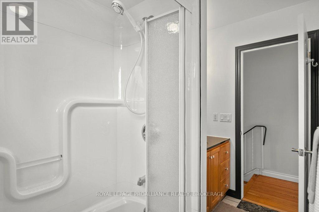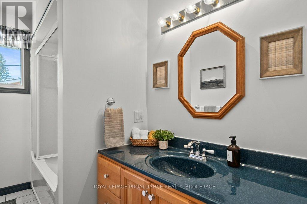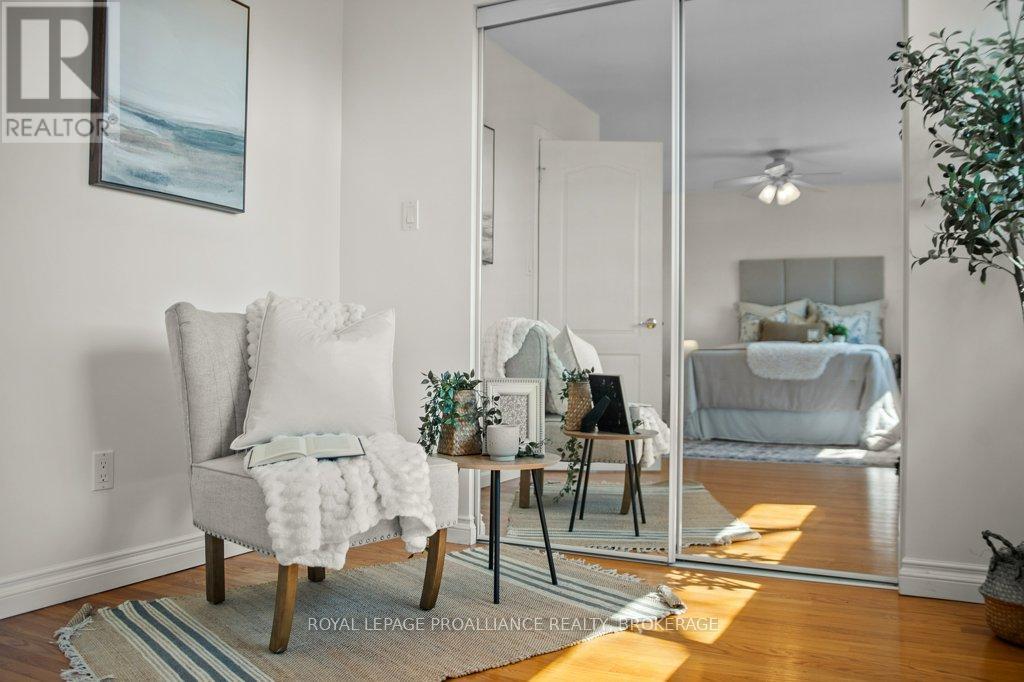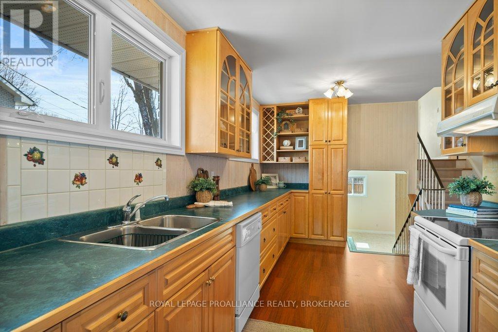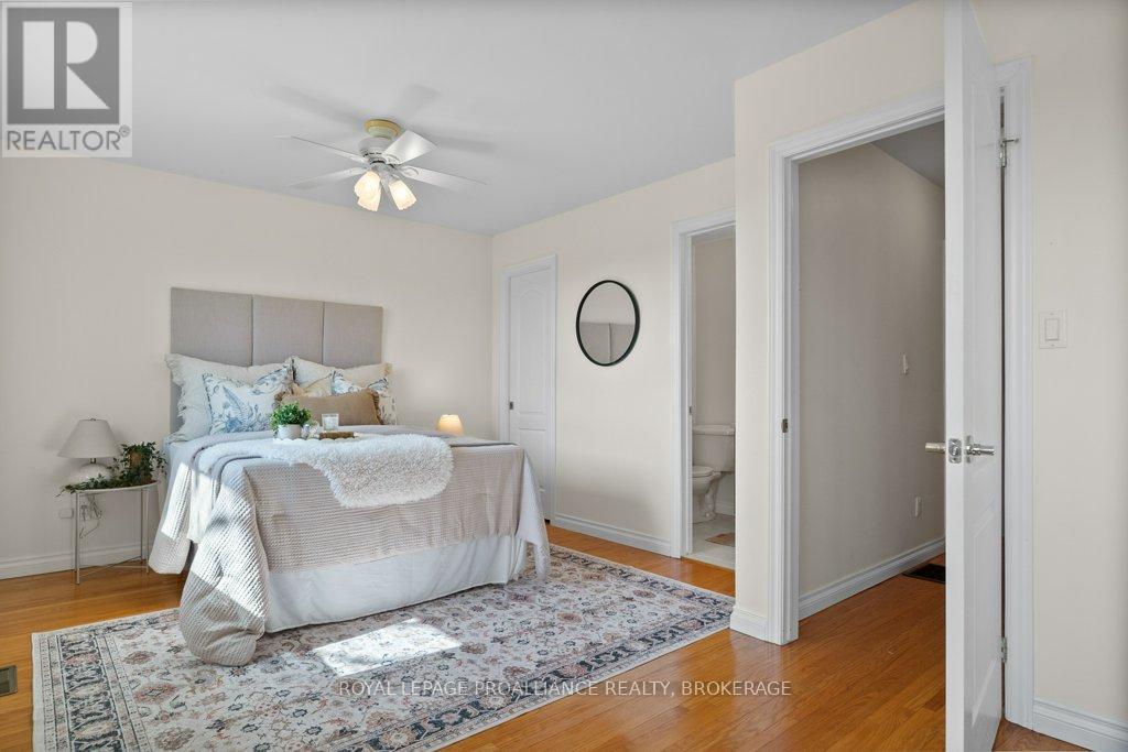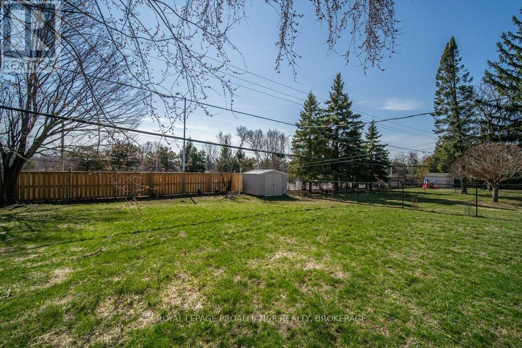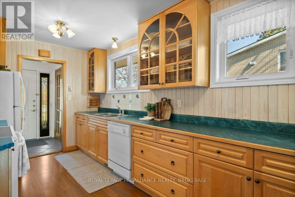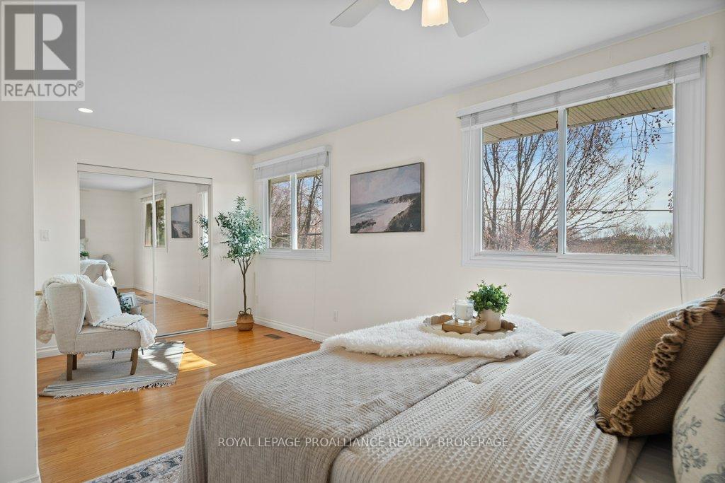 Welcome to this beautifully maintained back split, ideally located in the popular Bayridge Neighbourhood, minutes from schools, public transportation, shopping, amenities, and everyday conveniences. This truly immaculate home offers a main floor boasting a bright and inviting living room and dining area with hardwood flooring, along with a large kitchen offering abundant cabinetry and workspace ideal for everyday living and entertaining. The upper level has two bedrooms, including an oversized primary suite (formerly two bedrooms) that has been transformed into a generous retreat complete with walk-in closet and convenient 2 piece ensuite bathroom. A second bedroom and full main bathroom complete this level. The lower level provides additional living space with a cozy rec room featuring a gas fireplace, a versatile room that could serve as a third bedroom, den, or home office, another 2 piece bathroom and laundry. The basement level remains unfinished, offering excellent storage. Outside, enjoy a large, fenced yard with no rear neighbours great for kids, pets, or outdoor gatherings and an interlocking stone patio perfect for barbecuing and Summer entertaining. The home also includes an attached garage and an expansive driveway with ample parking. Extensively updated over the years including roof, furnace, air conditioning, windows, and fencing, this home is truly move-in ready. Select photos have been virtually staged to help showcase the property's potential and demonstrate possible furniture placement and room functionality. (id:52904)
